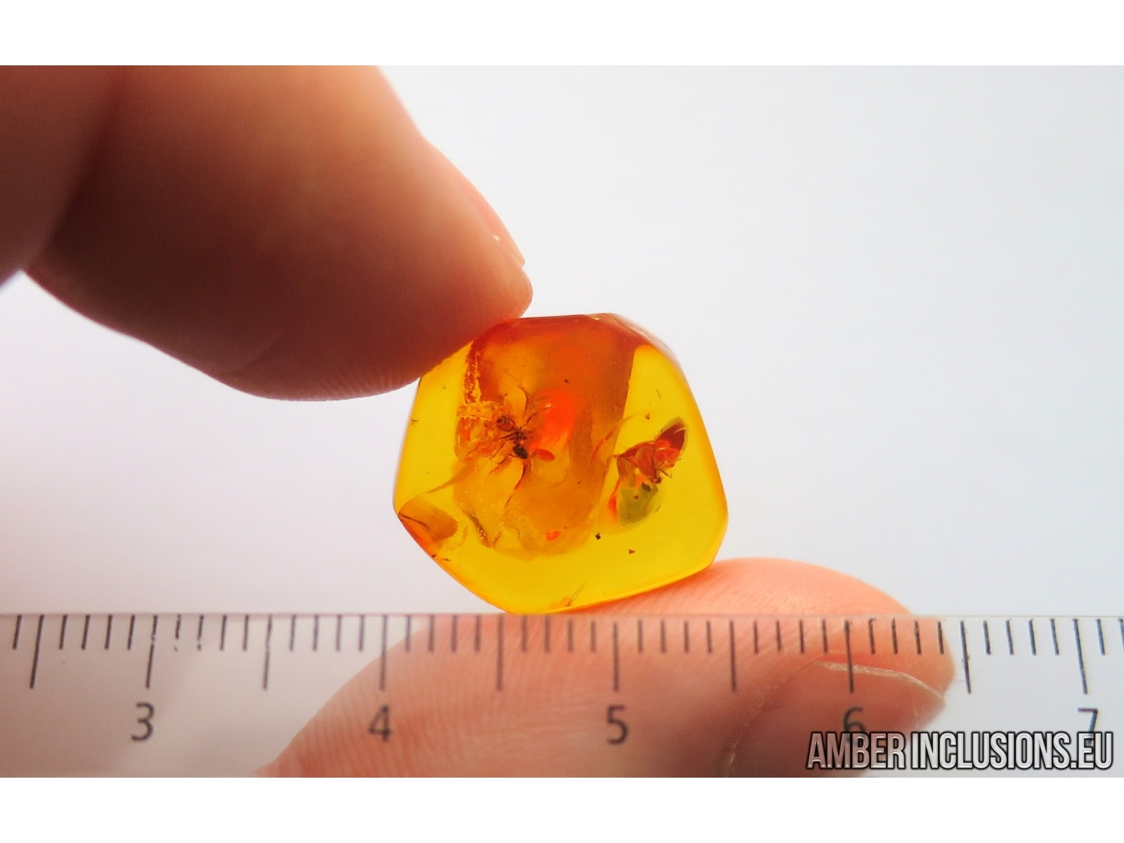 It weighs 1.3 g. Measurements of stone 17x15x7mm, length of ants ~3mm, fly ~2mm.