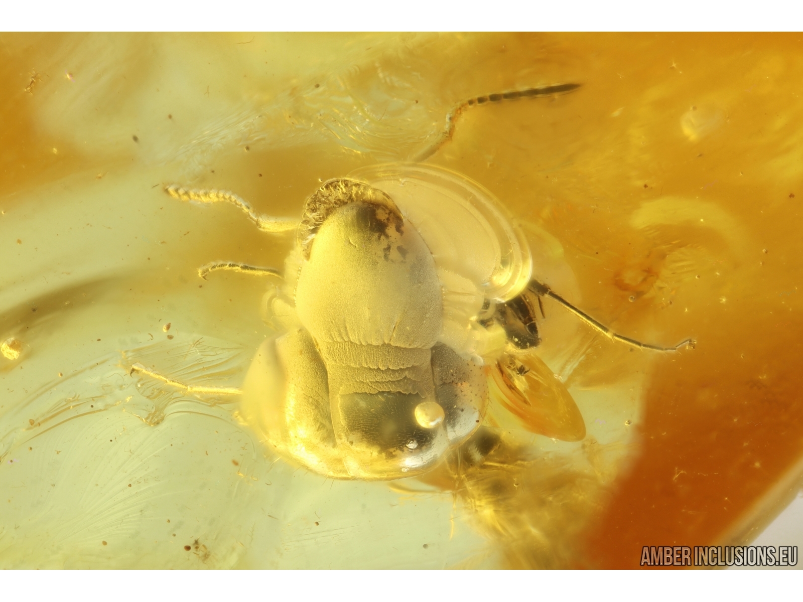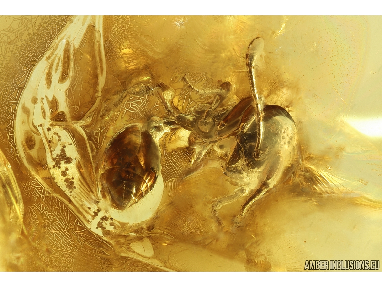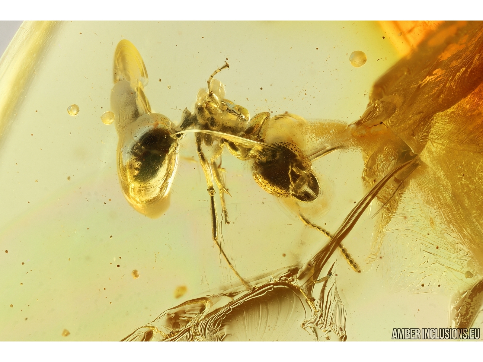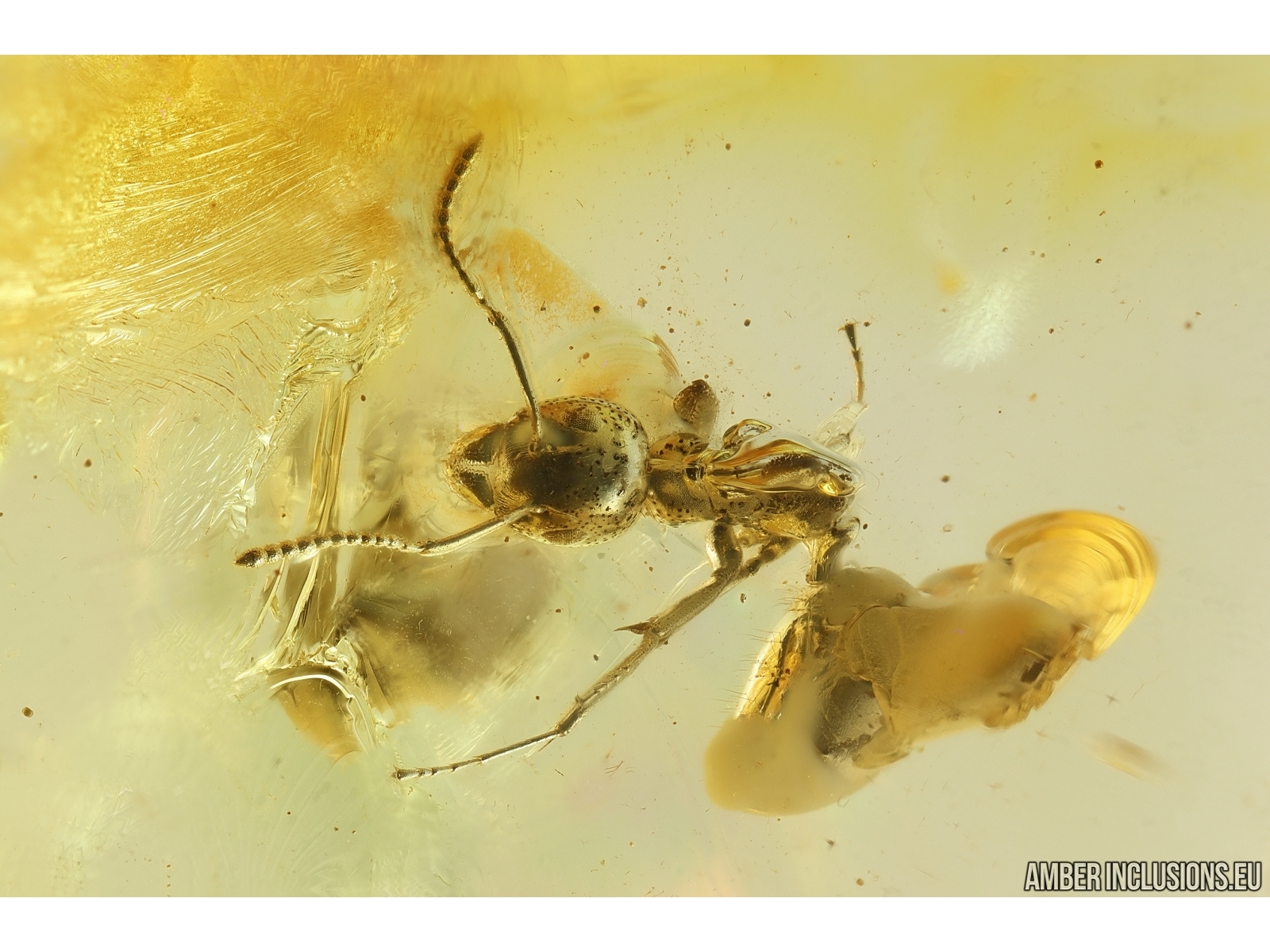 Ukrainian Rovno amber stone with fossil inclusions, trapped 34-56 million years ago -2 Ants Formicidae Dolichoderus and Brown Scavenger Beetle Latridiidae.