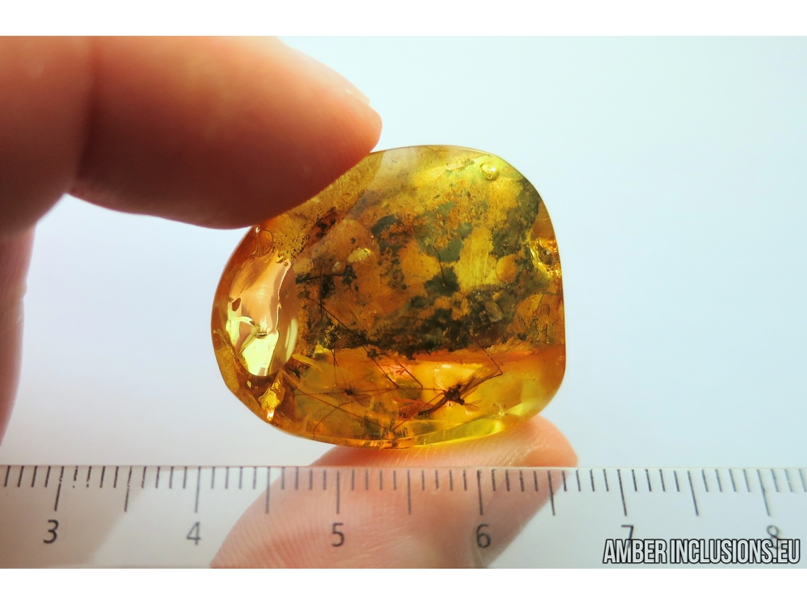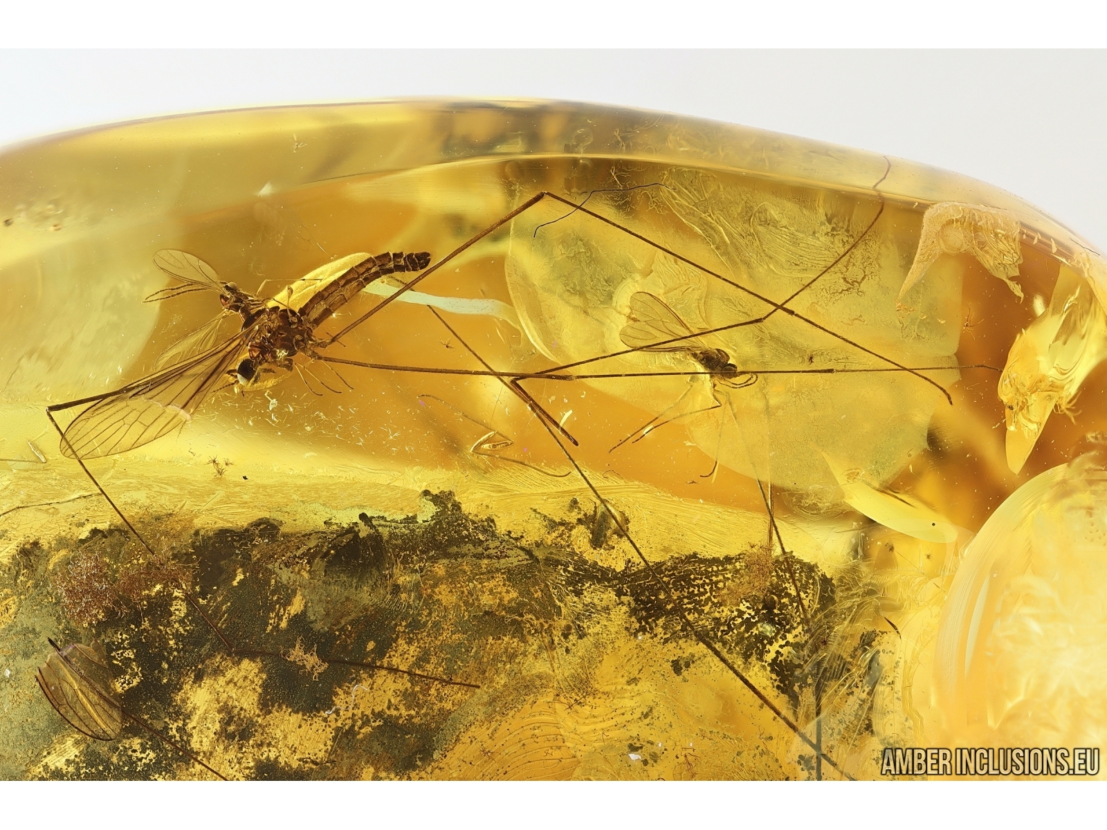 Ukrainian Rovno amber stone with fossil inclusions, trapped 34-56 million years ago - 2 Crane flies Limoniidae and More.