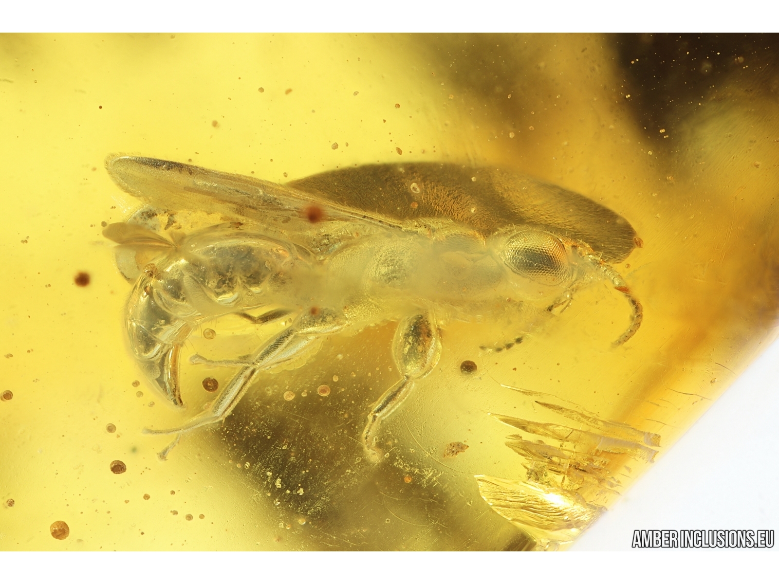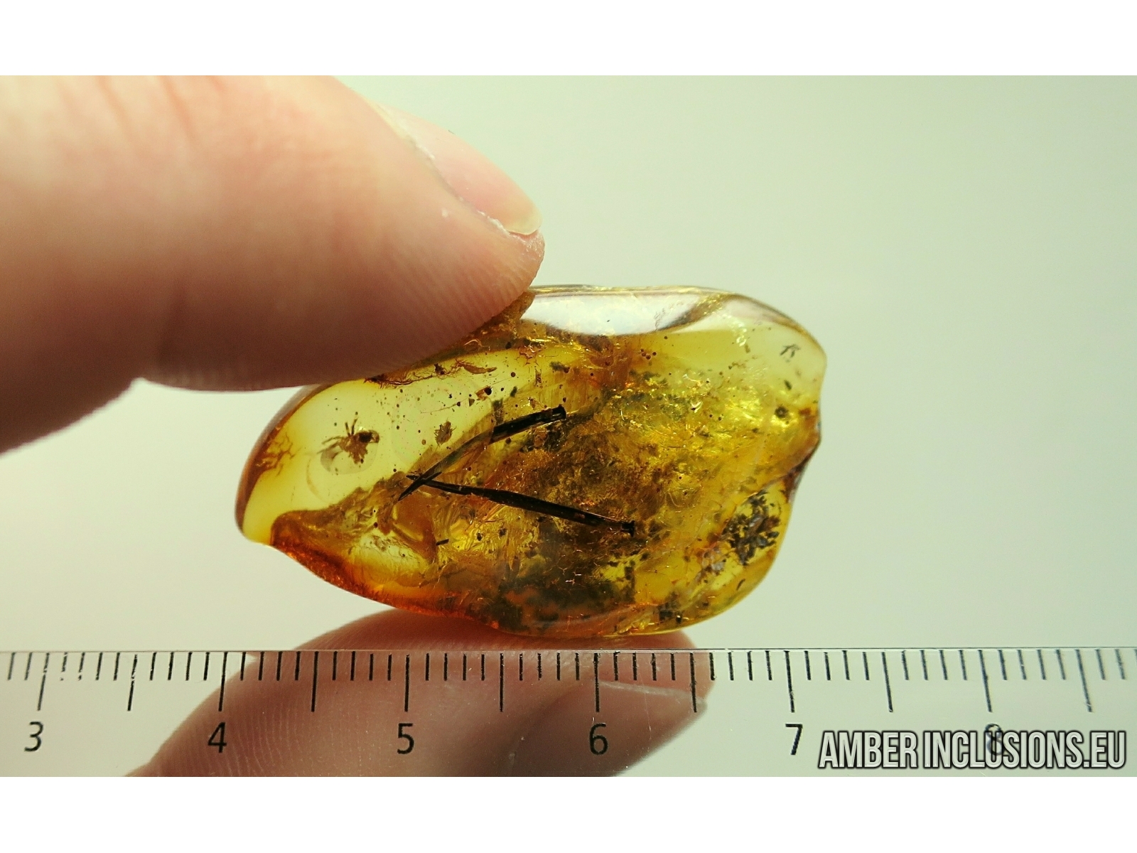 Ukrainian rovno amber stone with fossil inclusions, trapped 34-56 million years ago - 2 Leaves, Spider and Wasp.