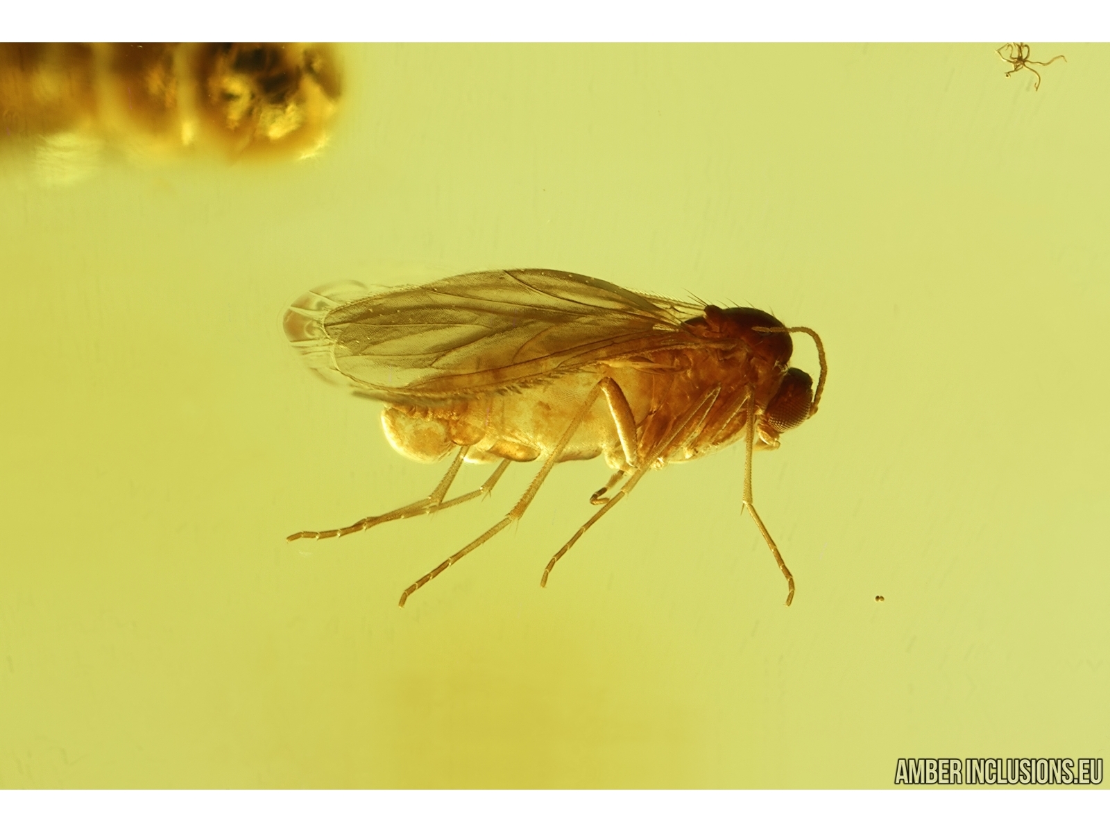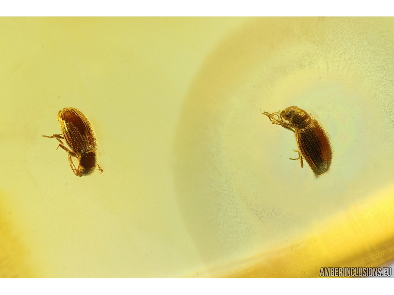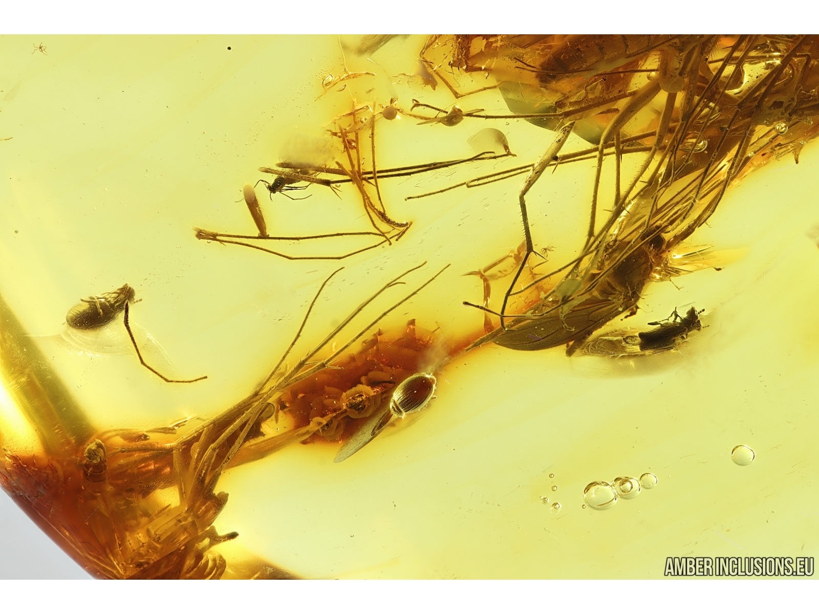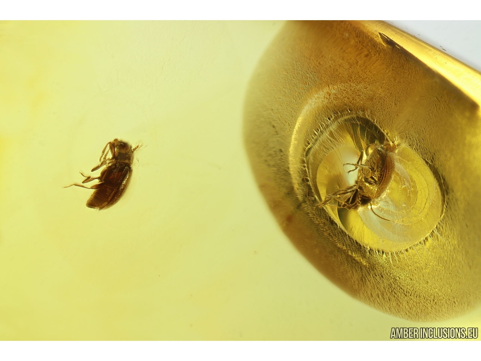 Baltic amber stone with fossil inclusions, trapped 34-56 million years ago - 7 Brown scavenger Beetles Latridiidae and Dipterans.