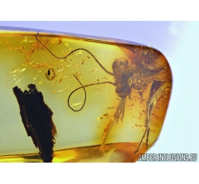 Very Nice Rare Praying Mantis, Mantodea and Dance fly Empididae. Fossil insects Baltic amber #10012