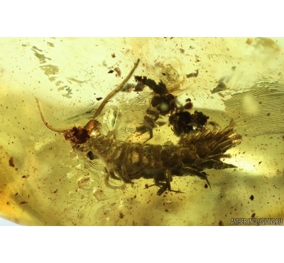 Nice House Centipede Scutigeridae and Wasp Hymenoptera. Fossil inclusions Big 37g Ukrainian Rovno amber stone #13786R