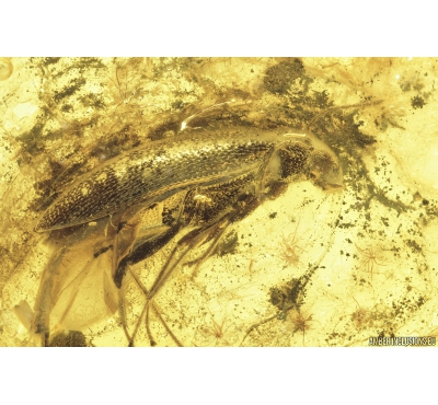 False darkling beetle Melandryidae Symphora glaesonauta and Worms Nematoda! Fossil inclusions Baltic amber #9603