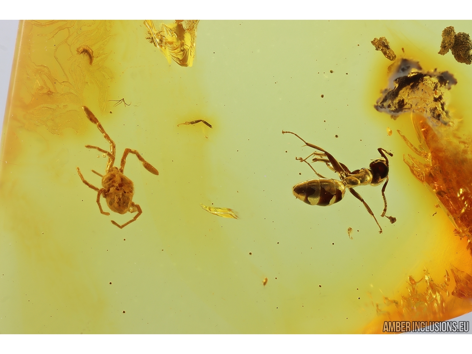 Baltic amber stone with fossil inclusions, trapped 34-56 million years ago - Ant Formicidae Ctenobethylus goepperti and Mite Acari.