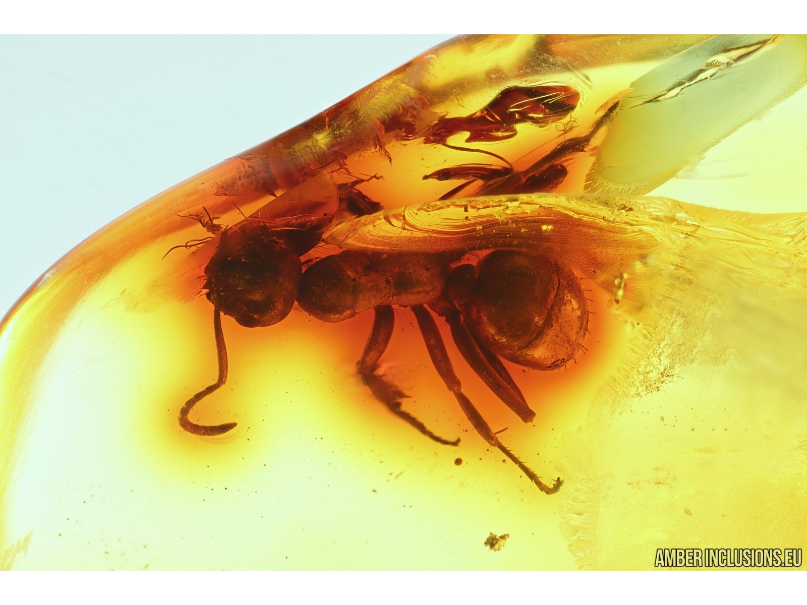 Baltic amber stone with fossil inclusion, trapped 34-56 million years ago - Ant Formicidae Formica.