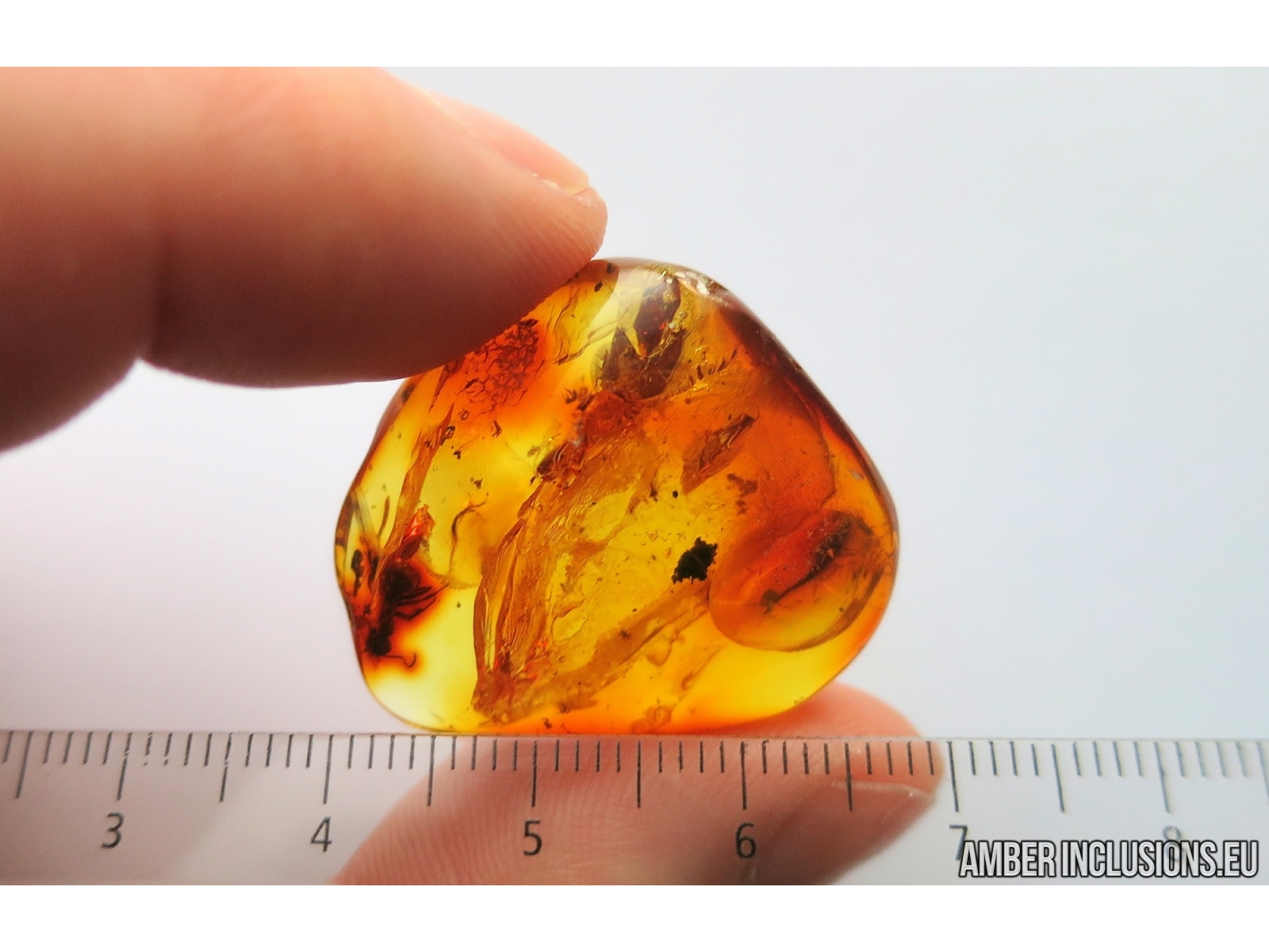 It weighs 3.8 g. Measurements of stone 28x25x8mm, length of ant ~5.5mm.