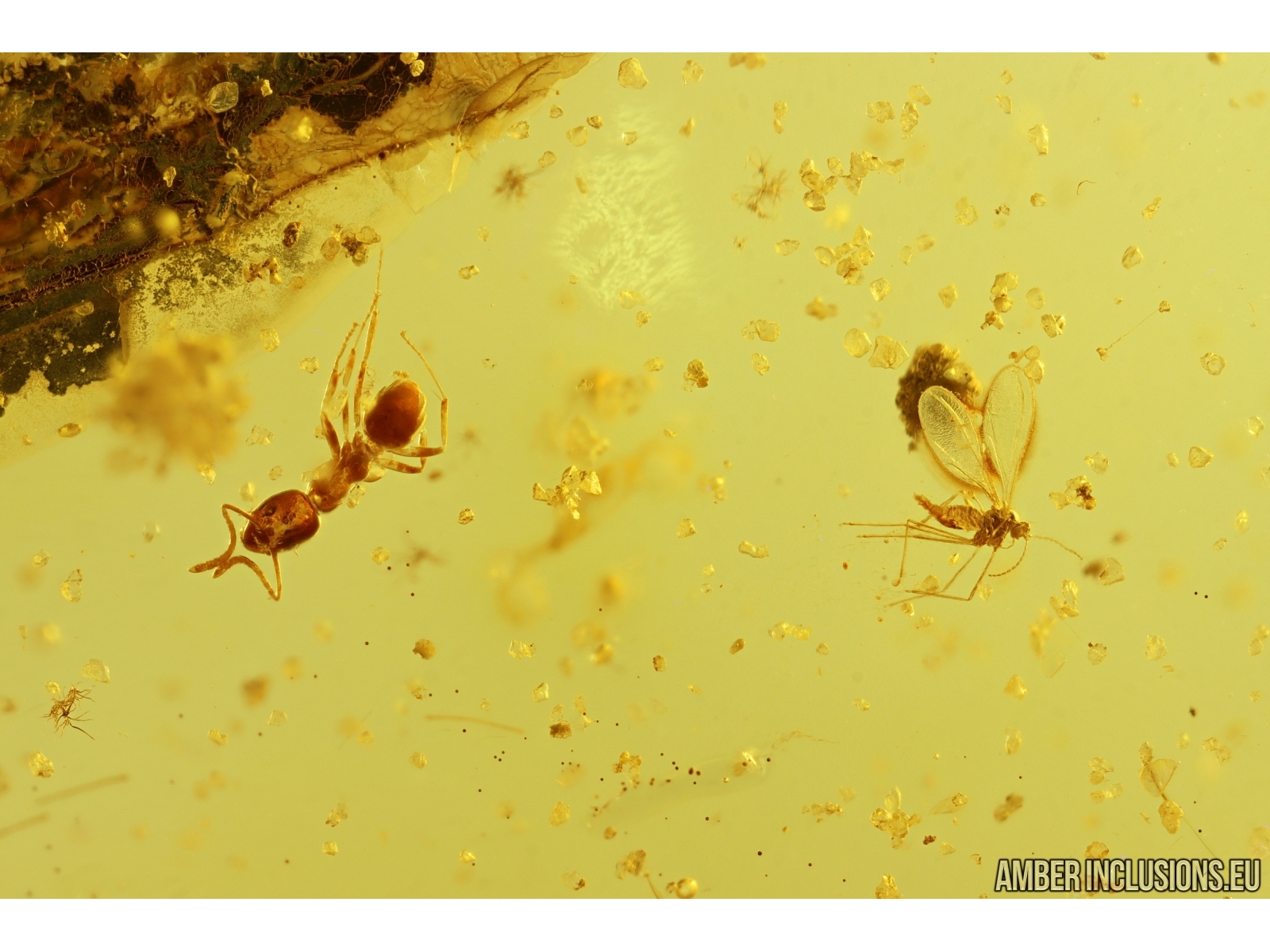 Ukrainian Rovno amber stone with fossil inclusions, trapped 34-56 million years ago -Ant Formicidae Nylanderia pygmaea, Plant, Mites, Aphid and More.
