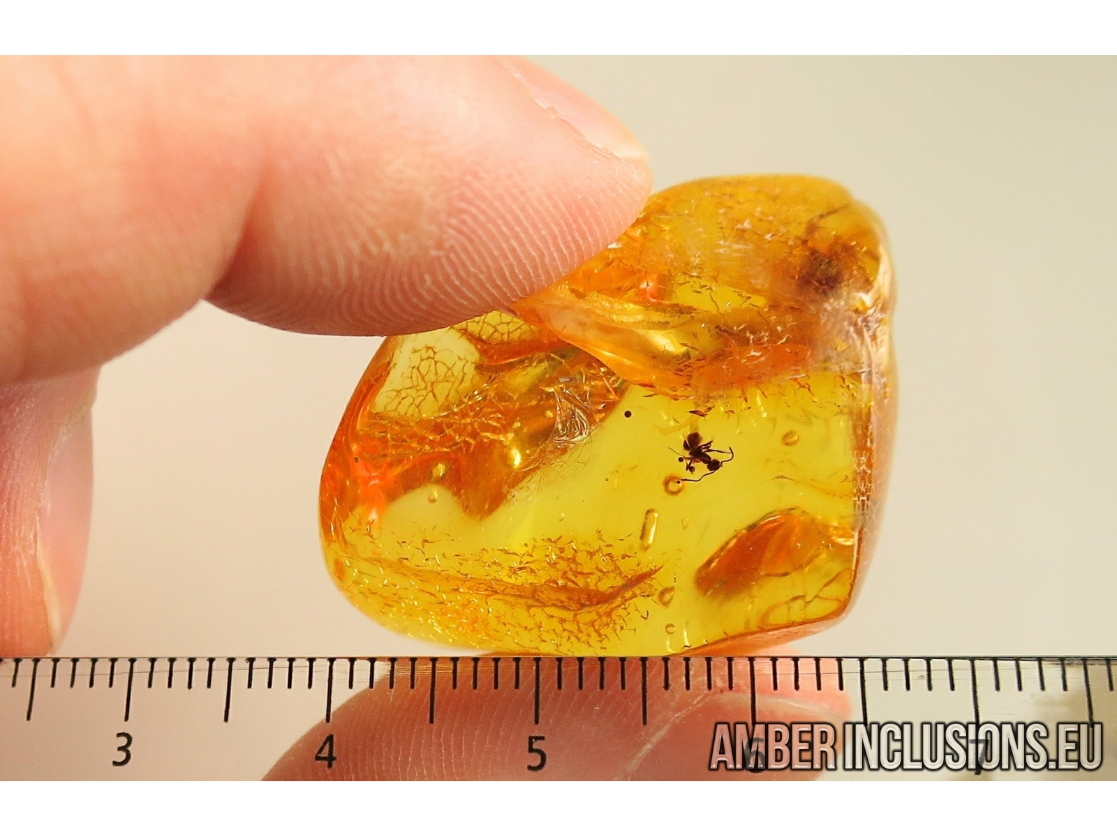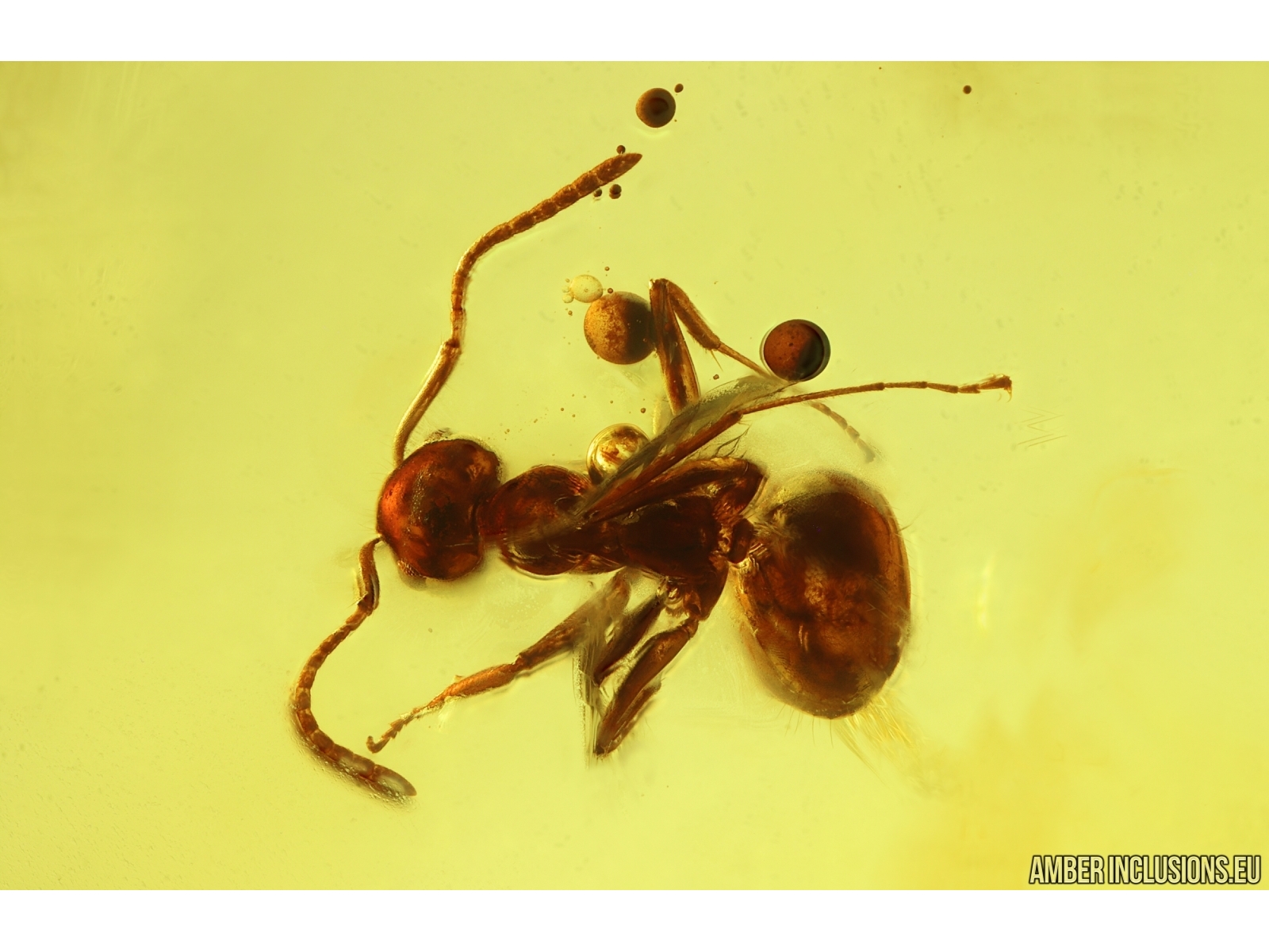 Ukrainian Rovno amber stone with fossil inclusions, trapped 34-56 million years ago - Ant Lasius schiefferdeckeri and Spider Araneae.