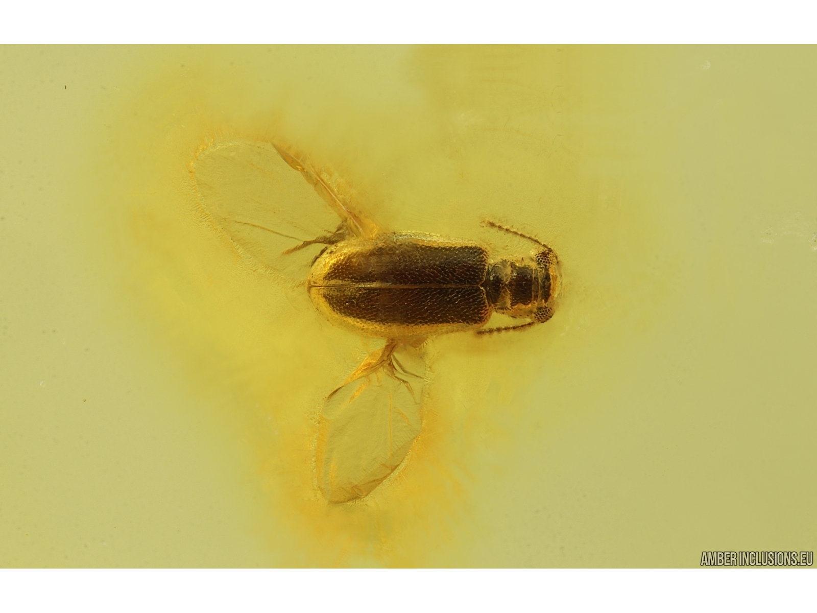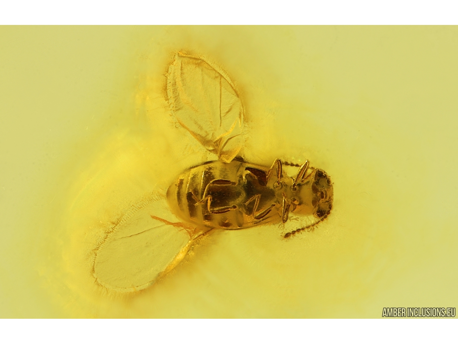 Ukrainian Rovno amber stone with fossil inclusion, trapped 34-56 million years ago - Ant-like leaf beetle Aderidae.