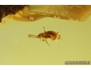 Baltic amber stone with fossil inclusion, trapped 34-56 million years ago -Ant-Like Stone Beetle Staphylinidae Scydmaeninae and Caterpillar Case.