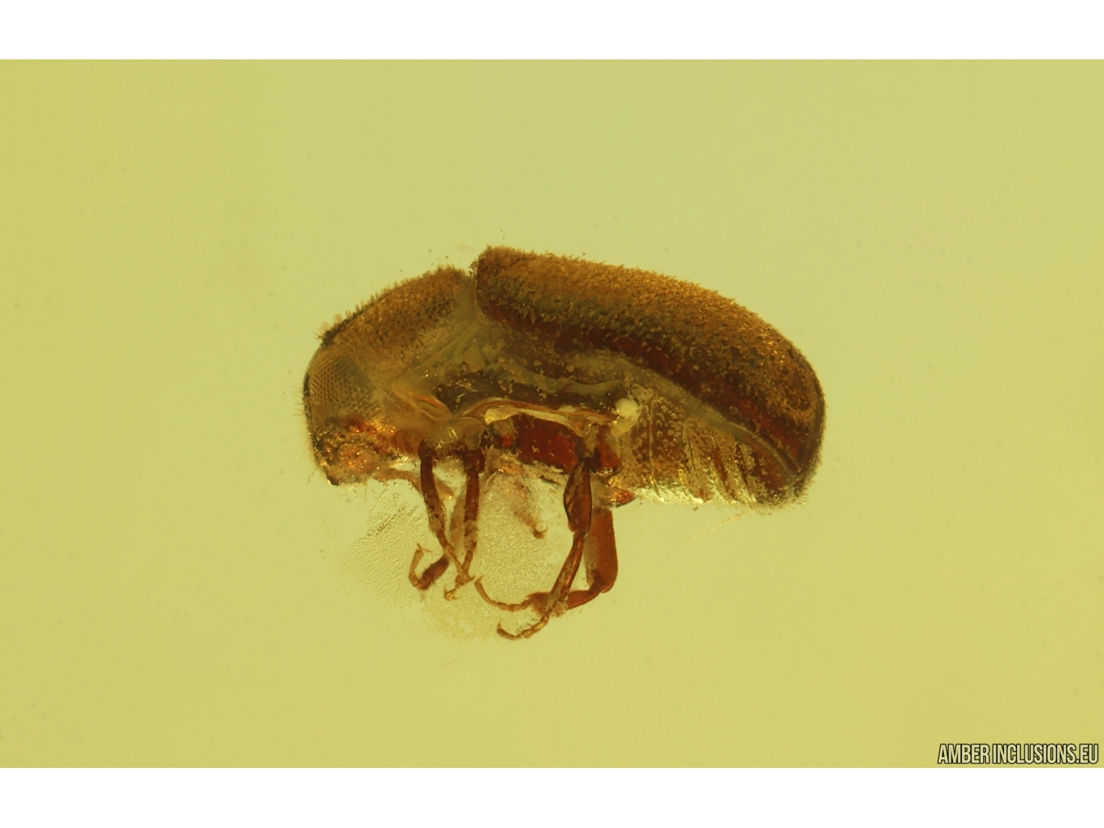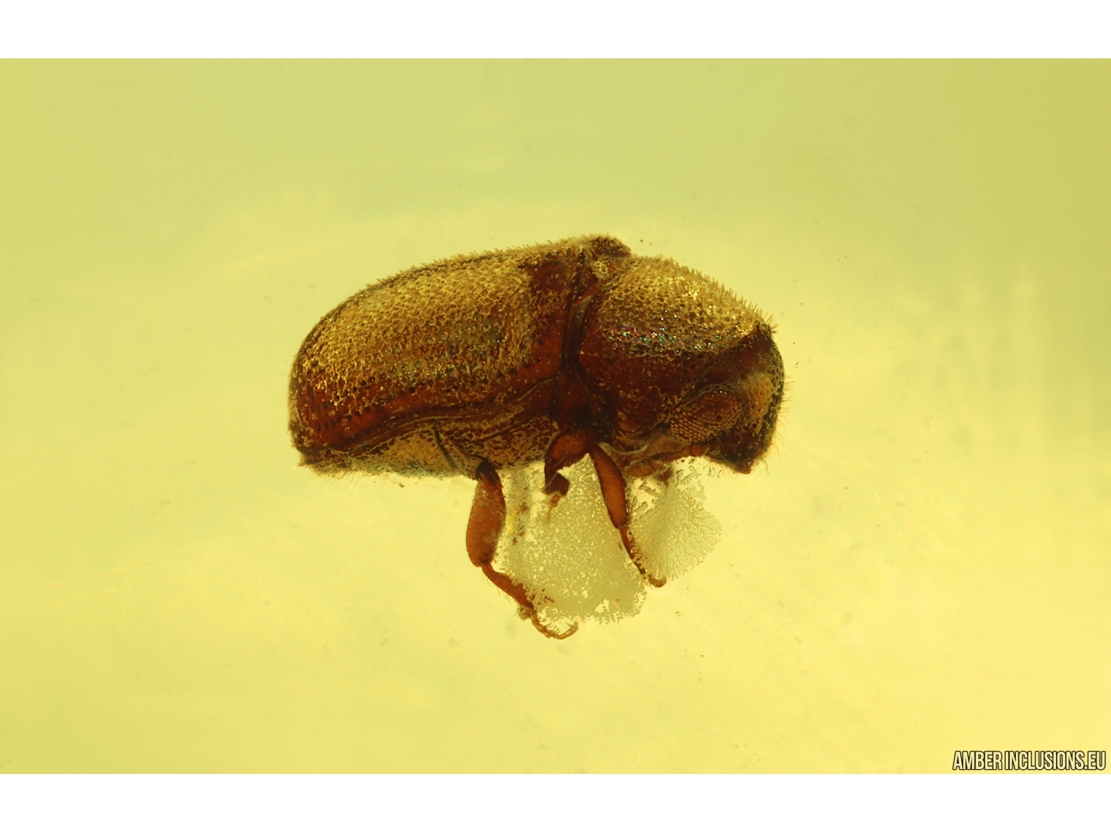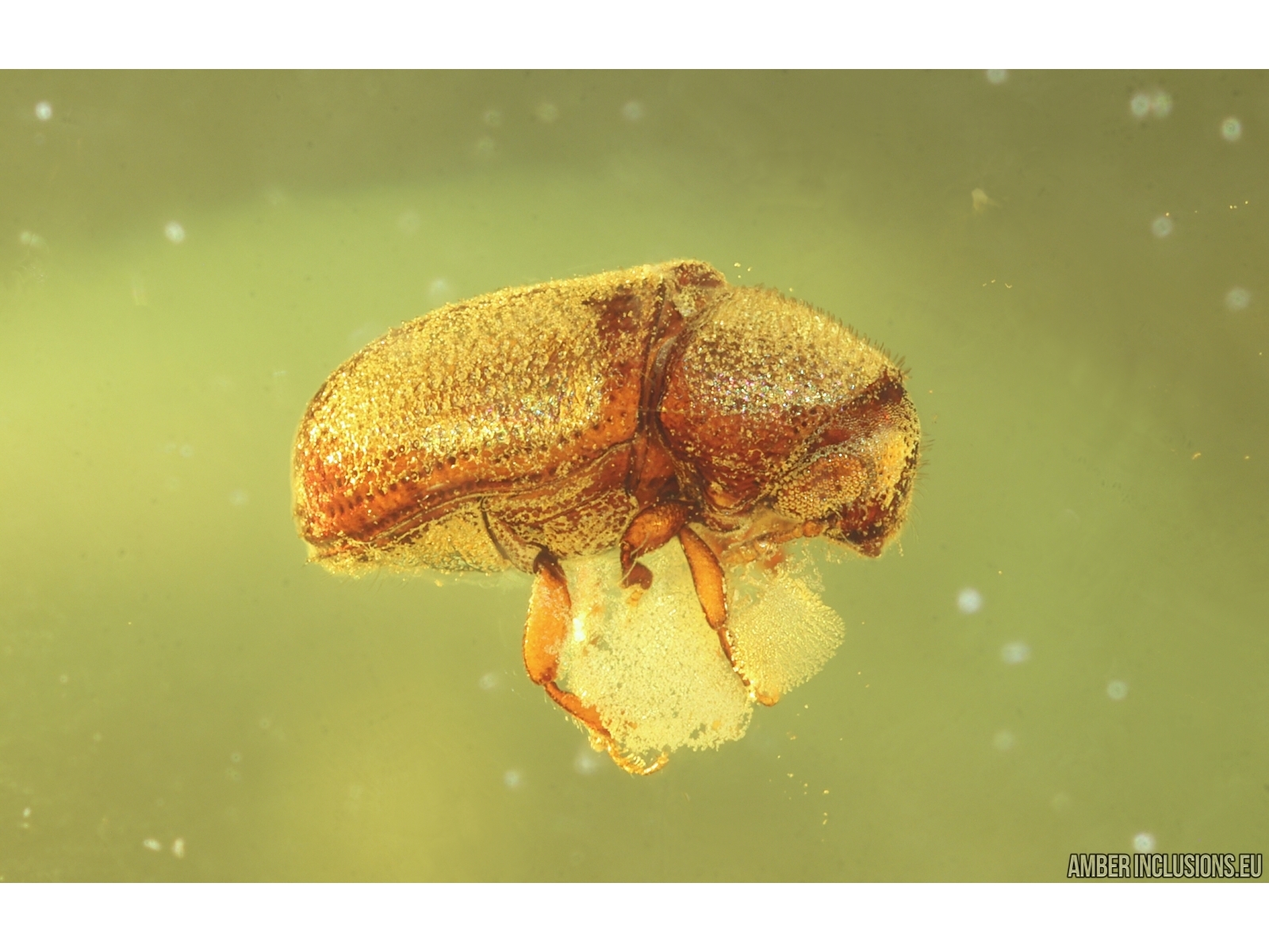 It weighs 0.7 g. Measurements of stone 17x12x6mm, length of beetle ~1.7mm.