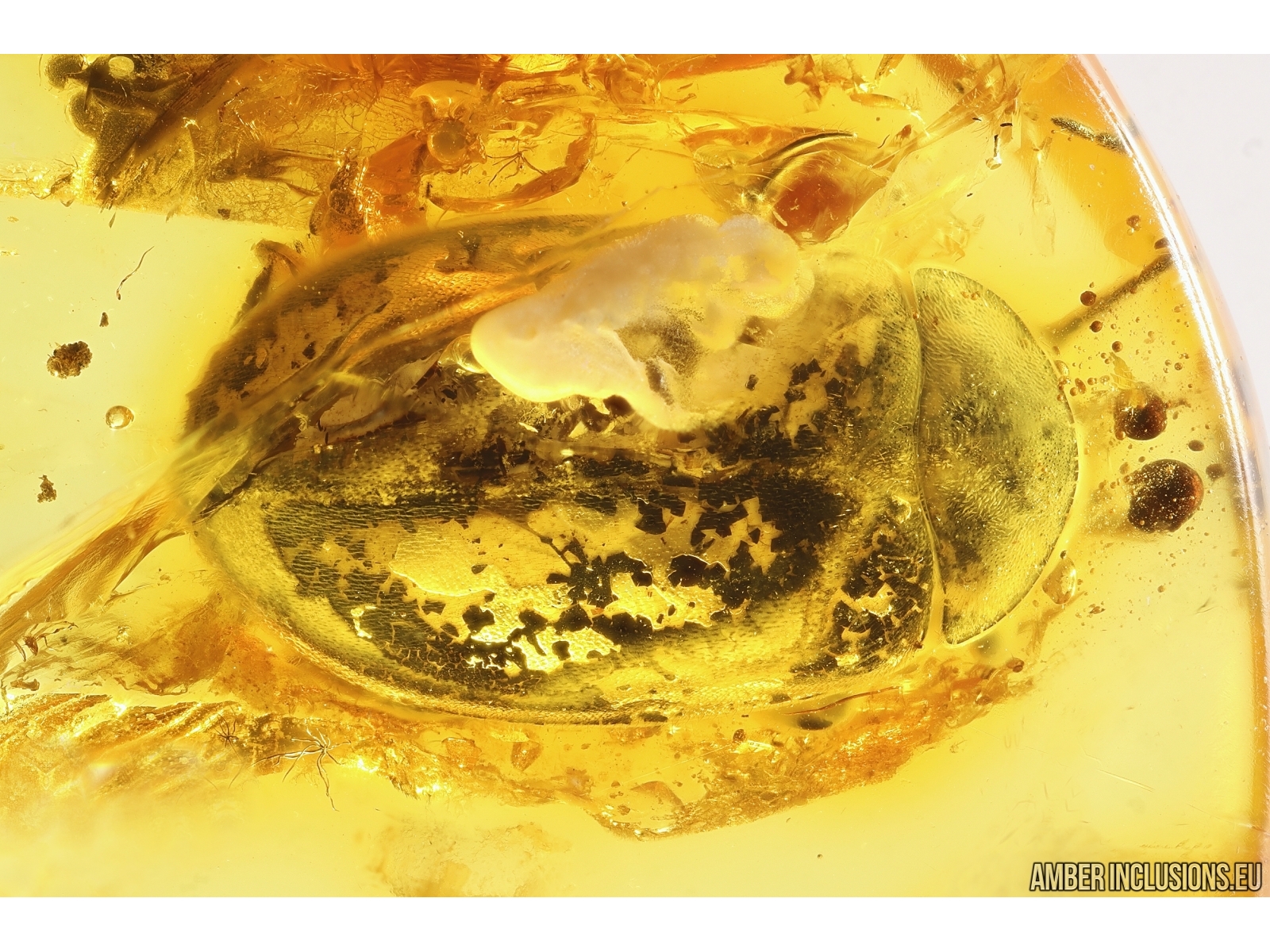 Coleoptera It weighs 0.5 g. Measurements of stone 15x12x4mm, length of beetle ~4.7mm.