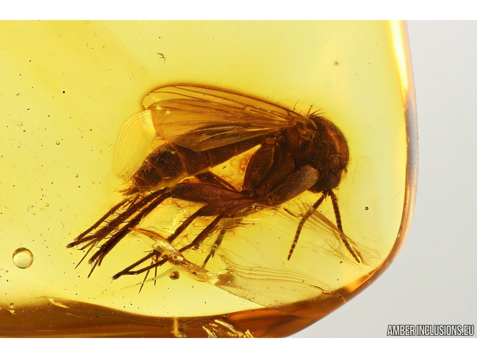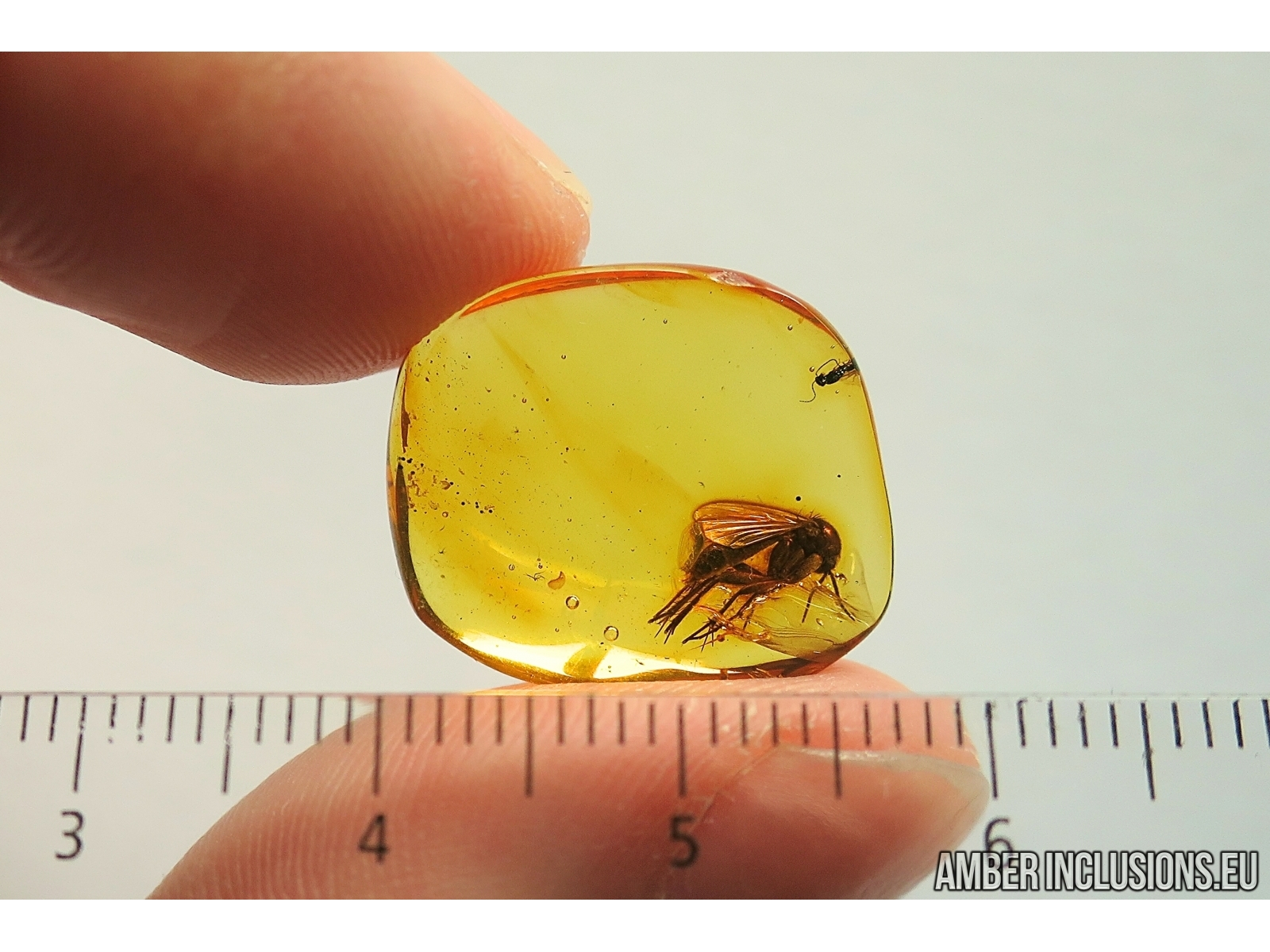 Baltic amber stone with fossil inclusion, trapped 34-56 million years ago -Fungus gnat Mycetophilidae.