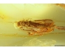Baltic amber stone with fossil inclusions, trapped 34-56 million years ago - Huge Stonefly Plecoptera with parasitic Worm Nematoda and Mites Acari!
