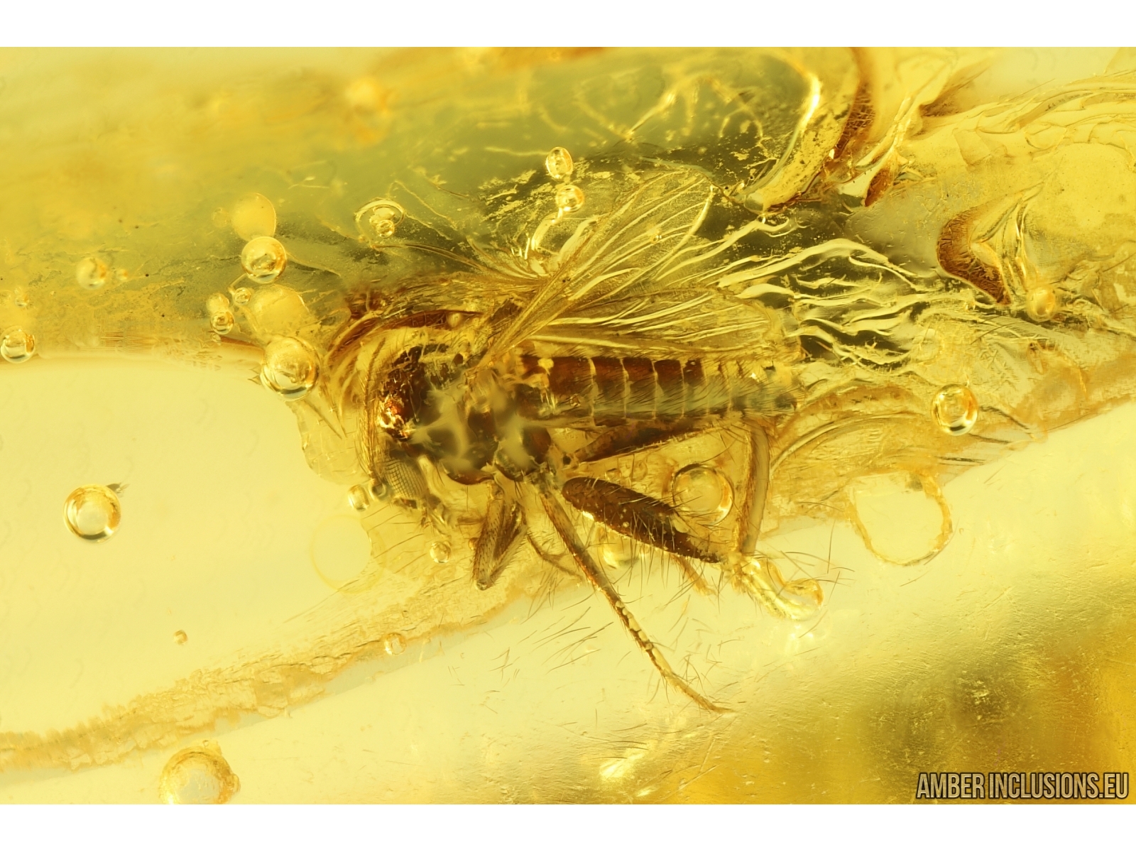 Baltic amber stone with fossil inclusion, trapped 34-56 million years ago - Biting midge Ceratopogonidae.