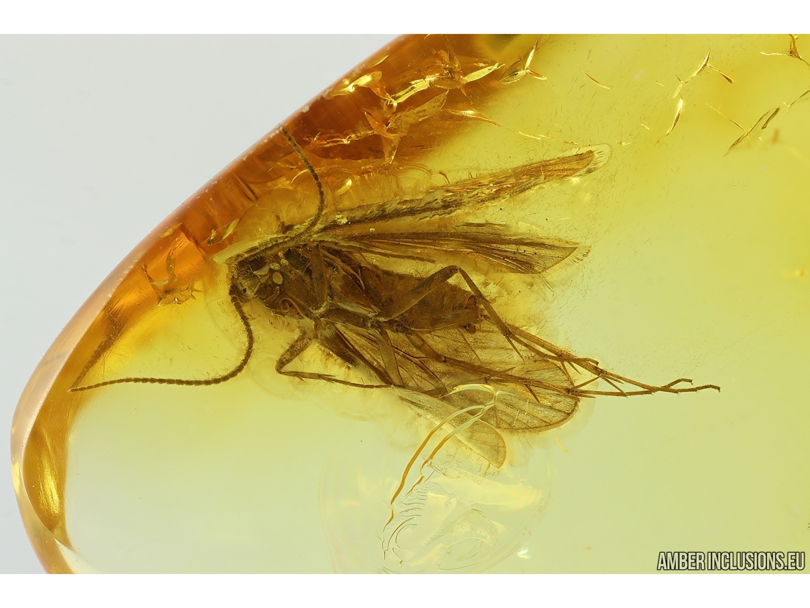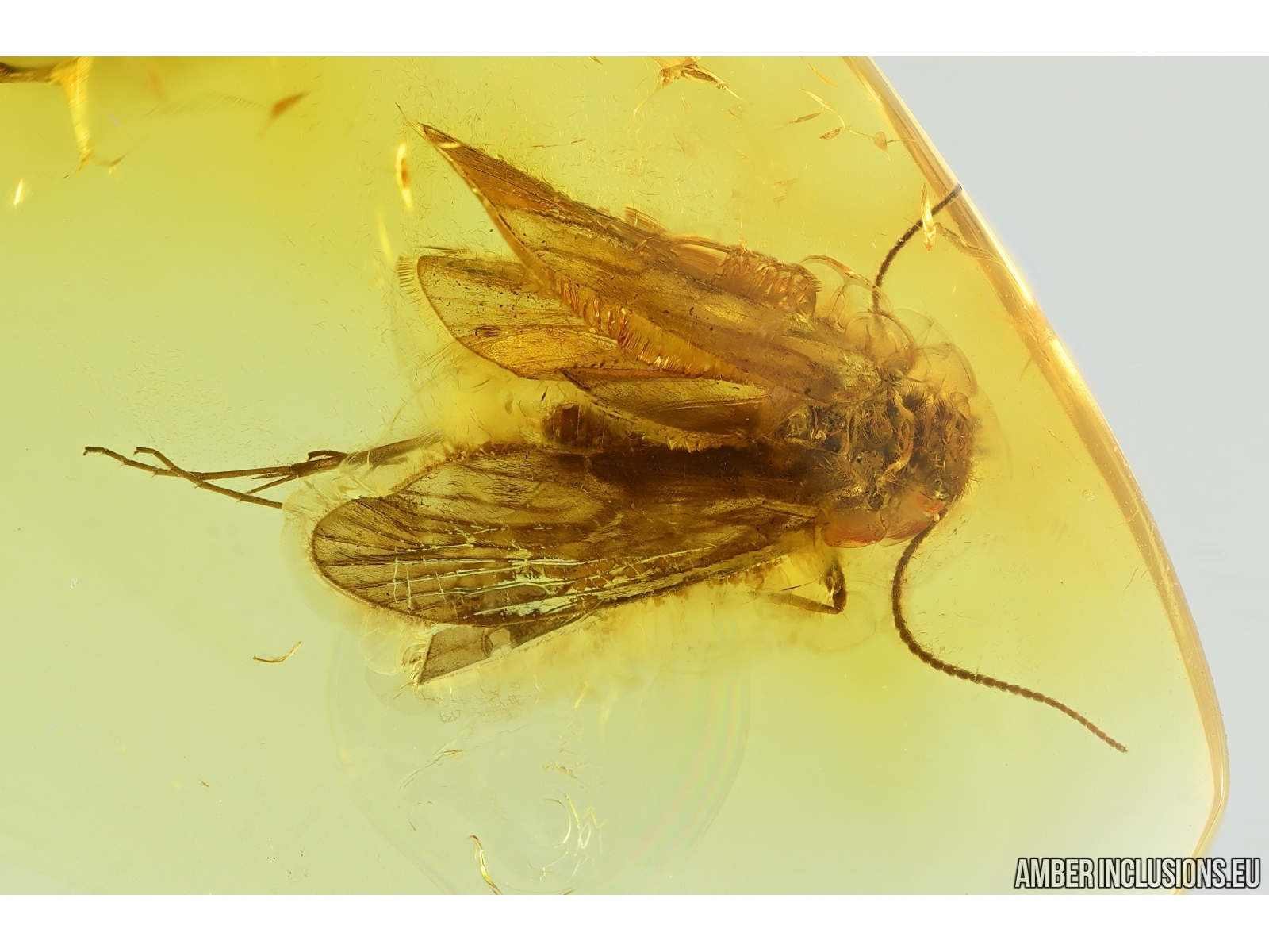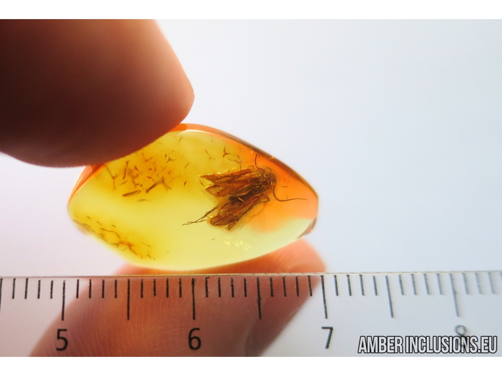 Baltic amber stone with fossil inclusion, trapped 34-56 million years ago - Caddisfly Trichoptera.