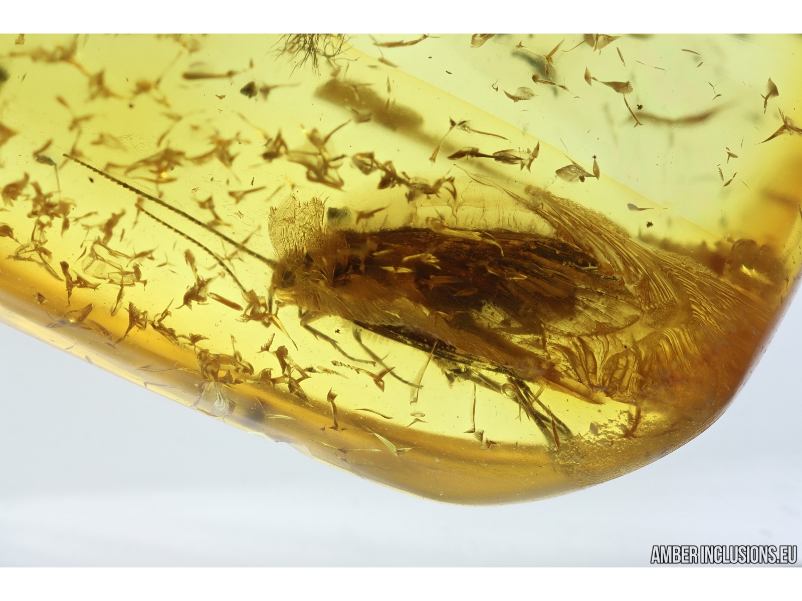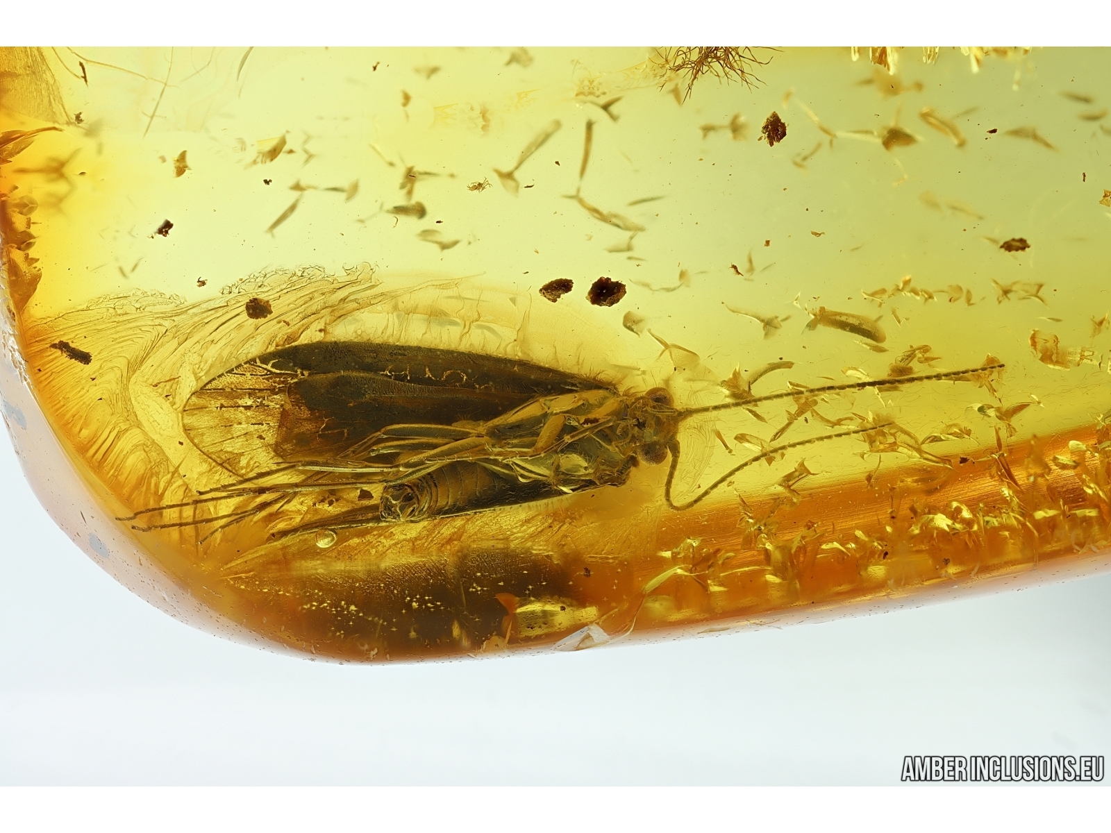 Ukrainian Rovno amber stone with fossil inclusion, trapped 34-56 million years ago -Caddisfly Trichoptera.