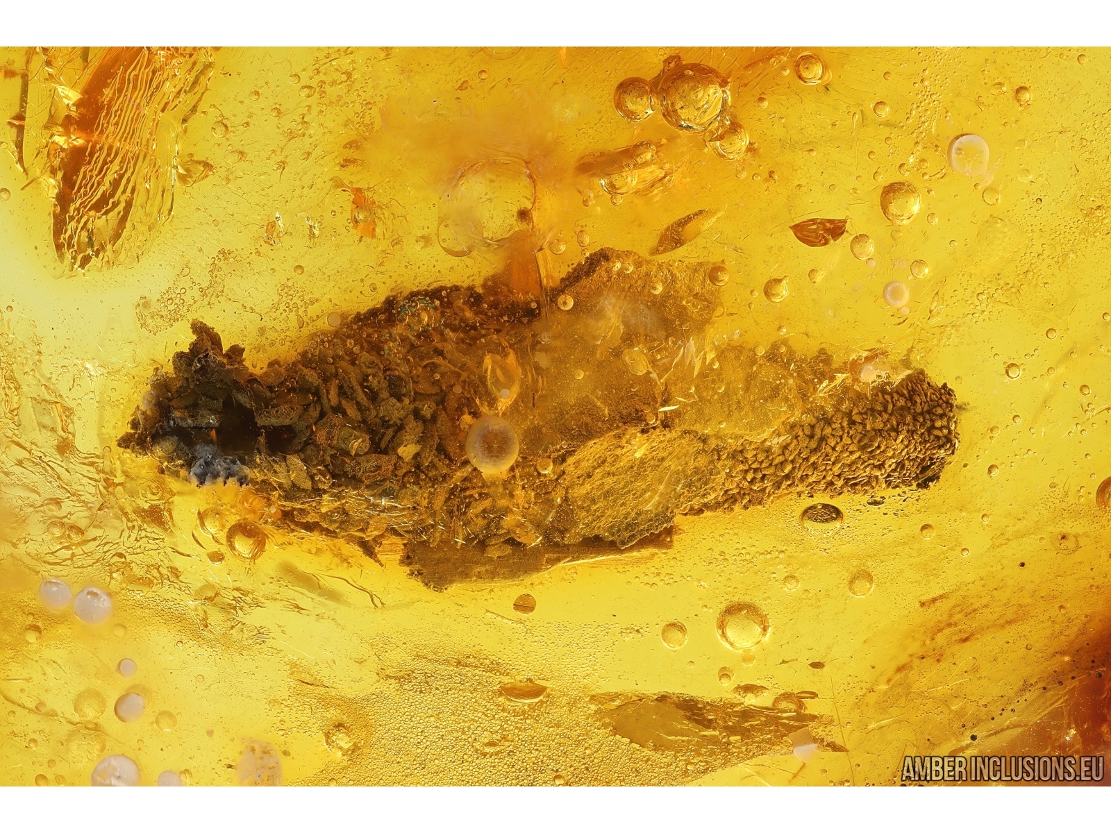 Baltic amber stone with fossil inclusion, trapped 34-56 million years ago - Caterpillar Case, Lepidoptera