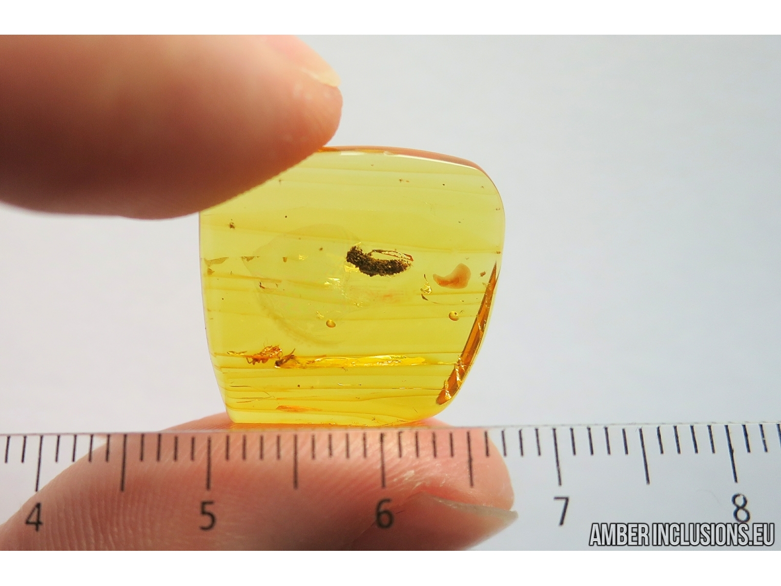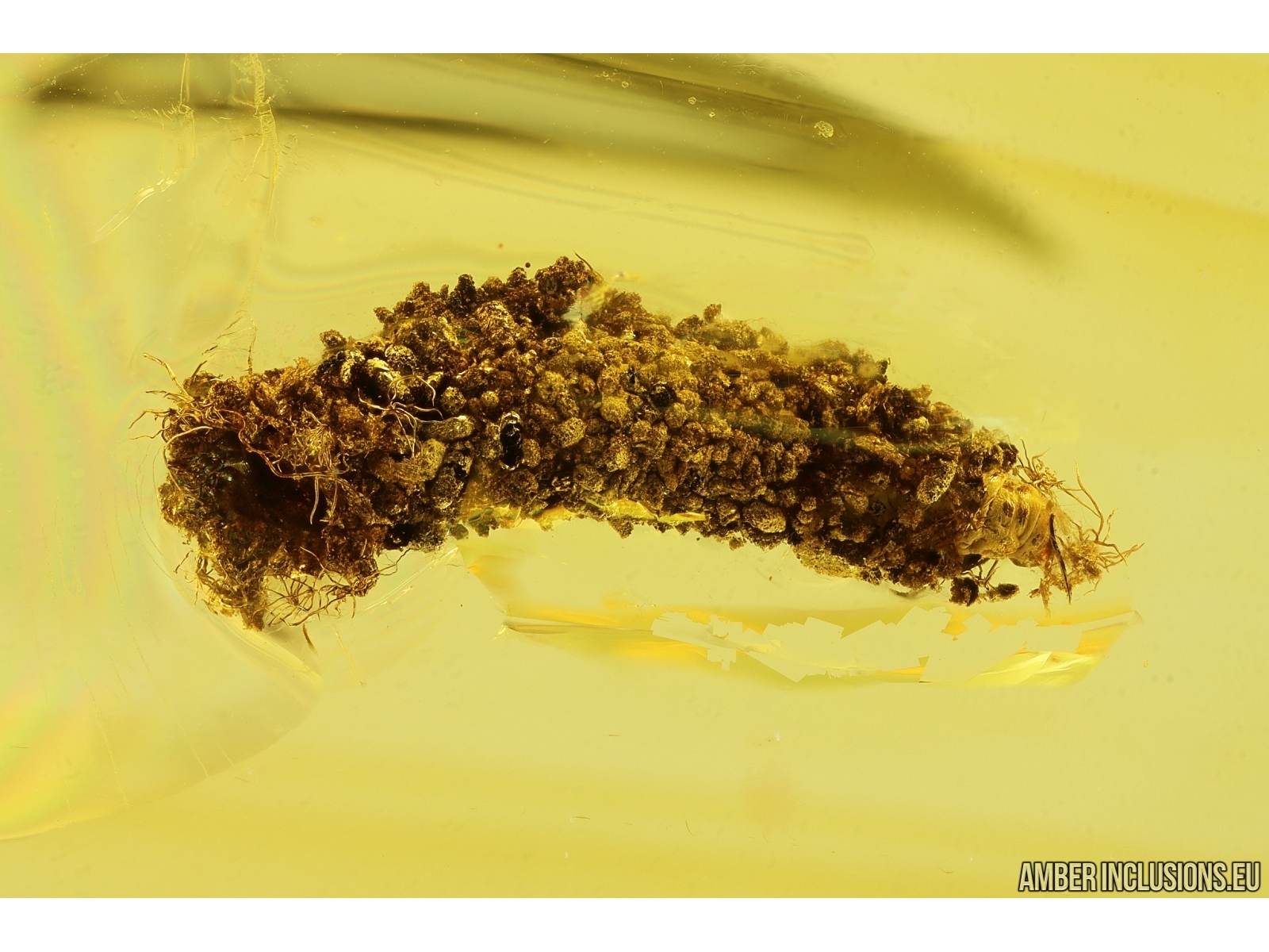 Baltic amber stone with fossil inclusion, trapped 34-56 million years ago - Caterpillar in Case.