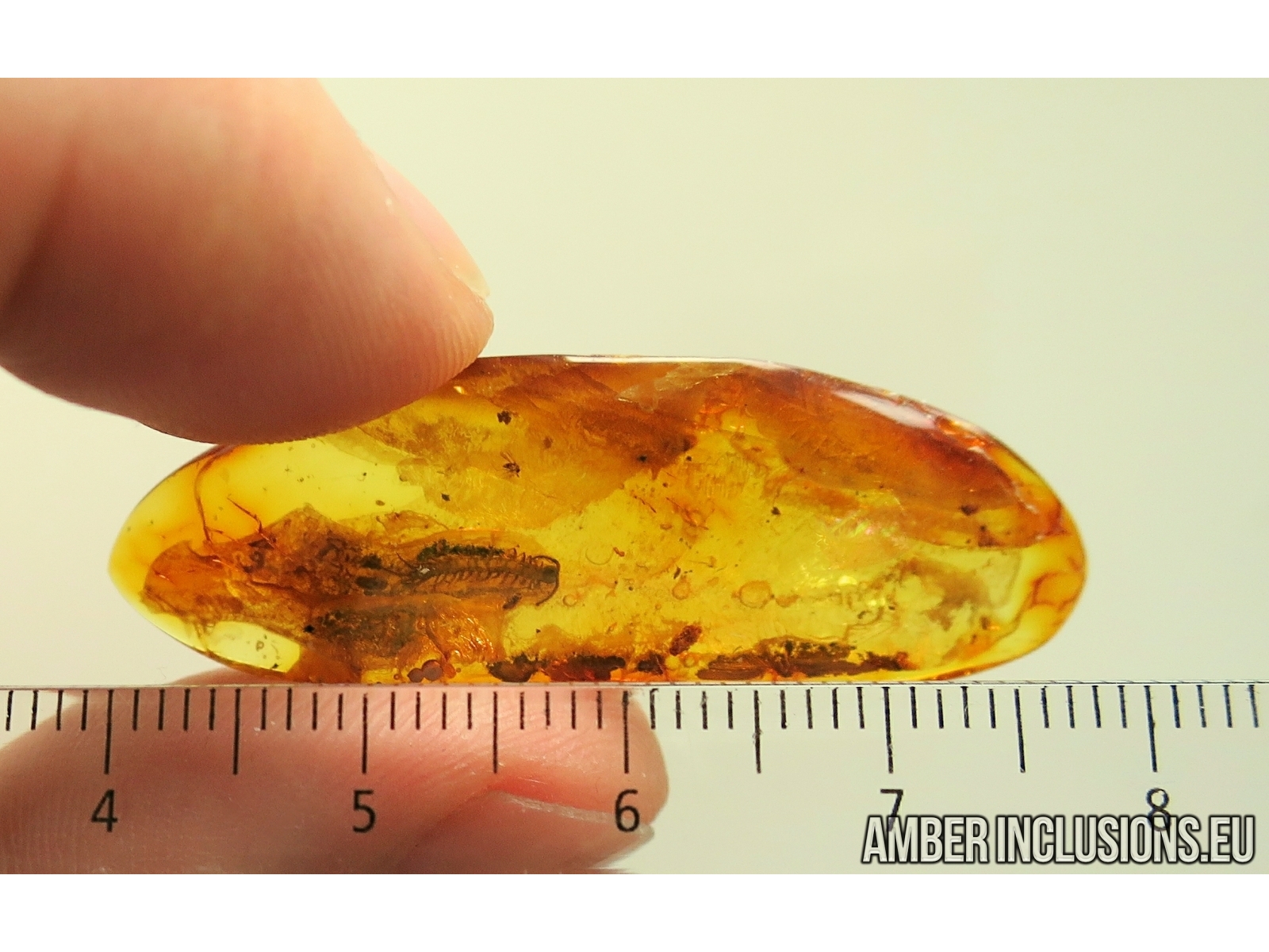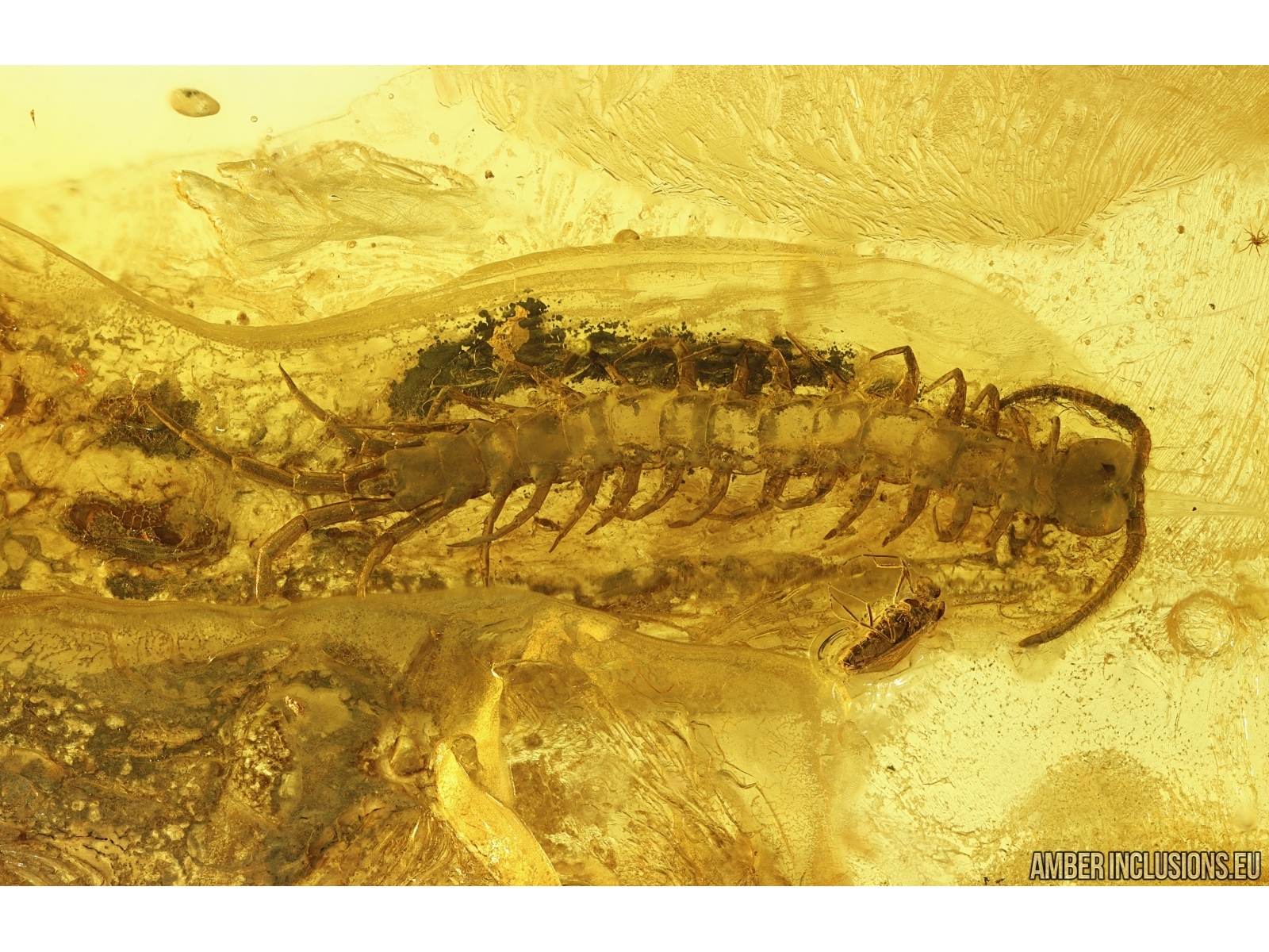Baltic amber stone with fossil inclusions, trapped 34-56 million years ago - Centipede Lithobiidae and More.