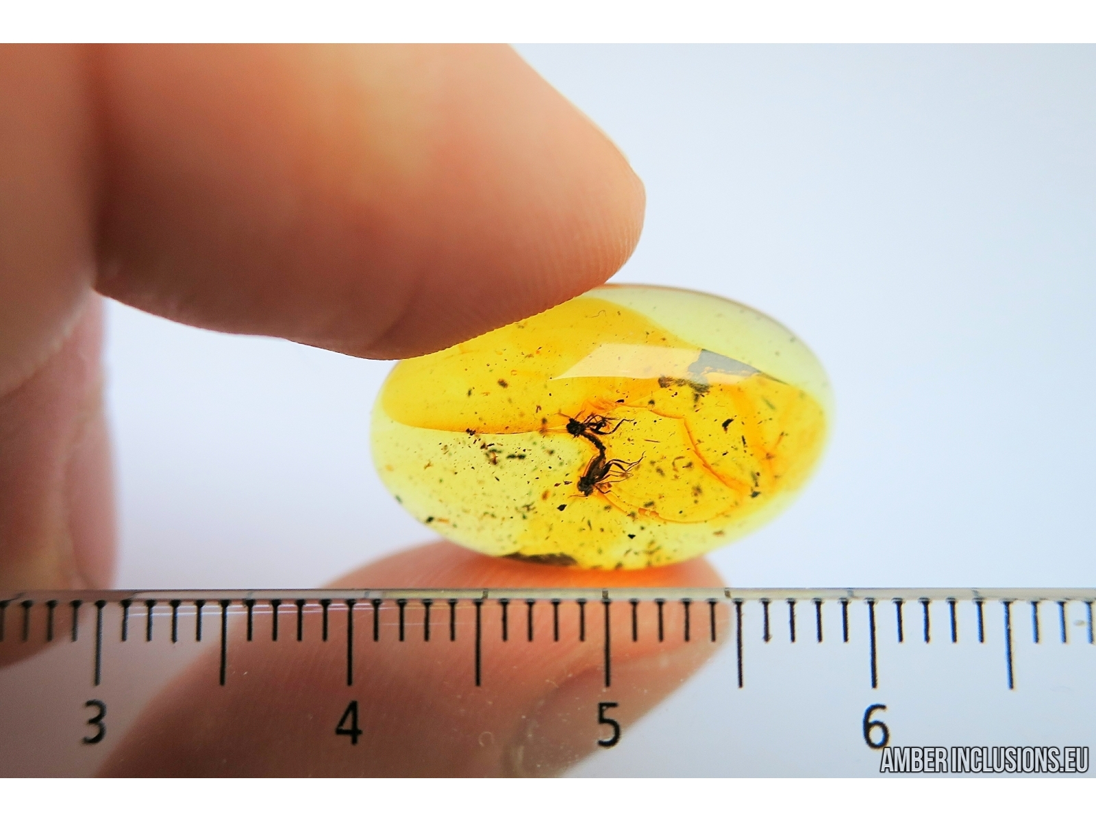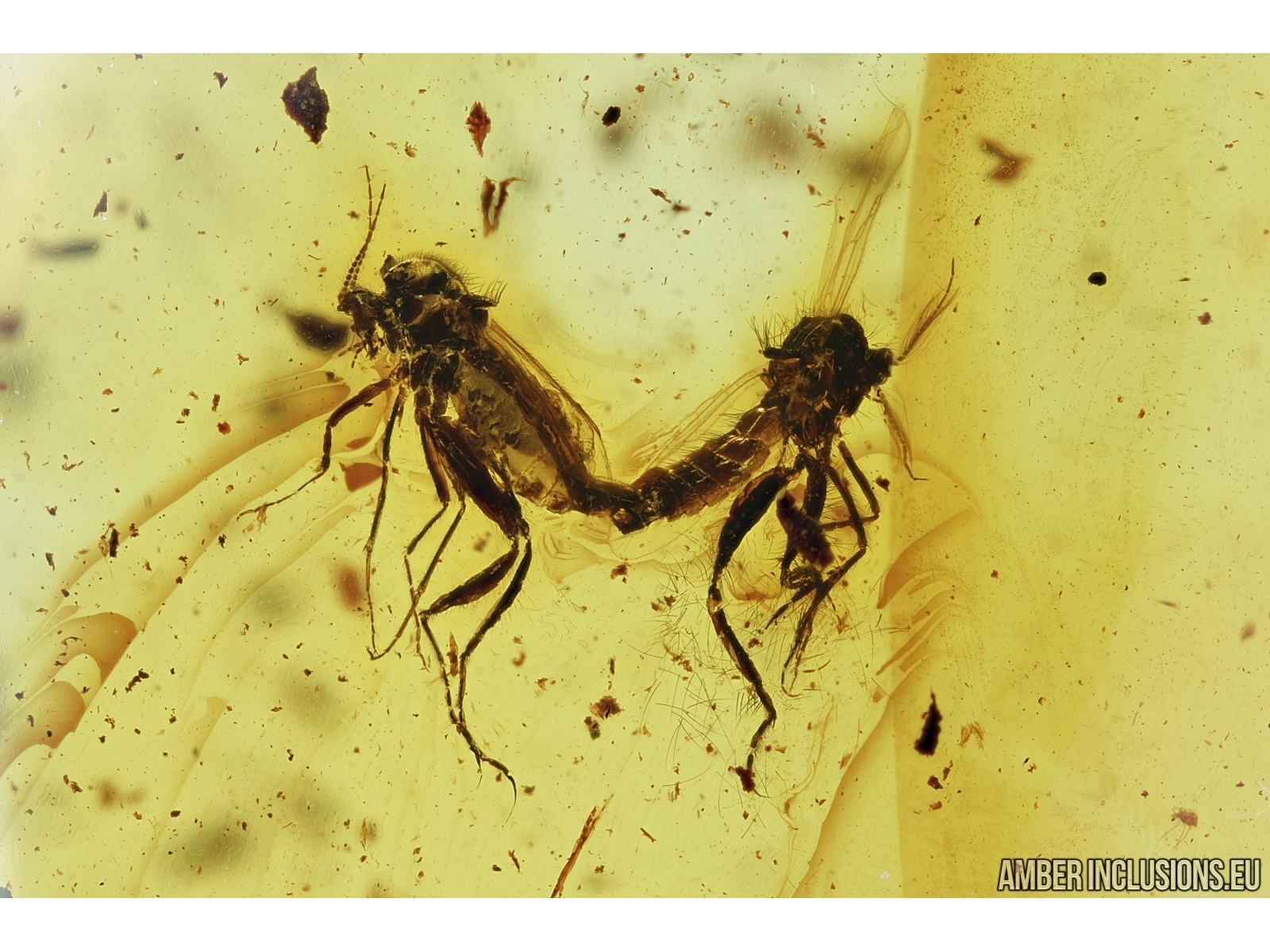 Baltic amber stone with fossil insects - Mating (Copula) Biting midges, Ceratopogonidae.