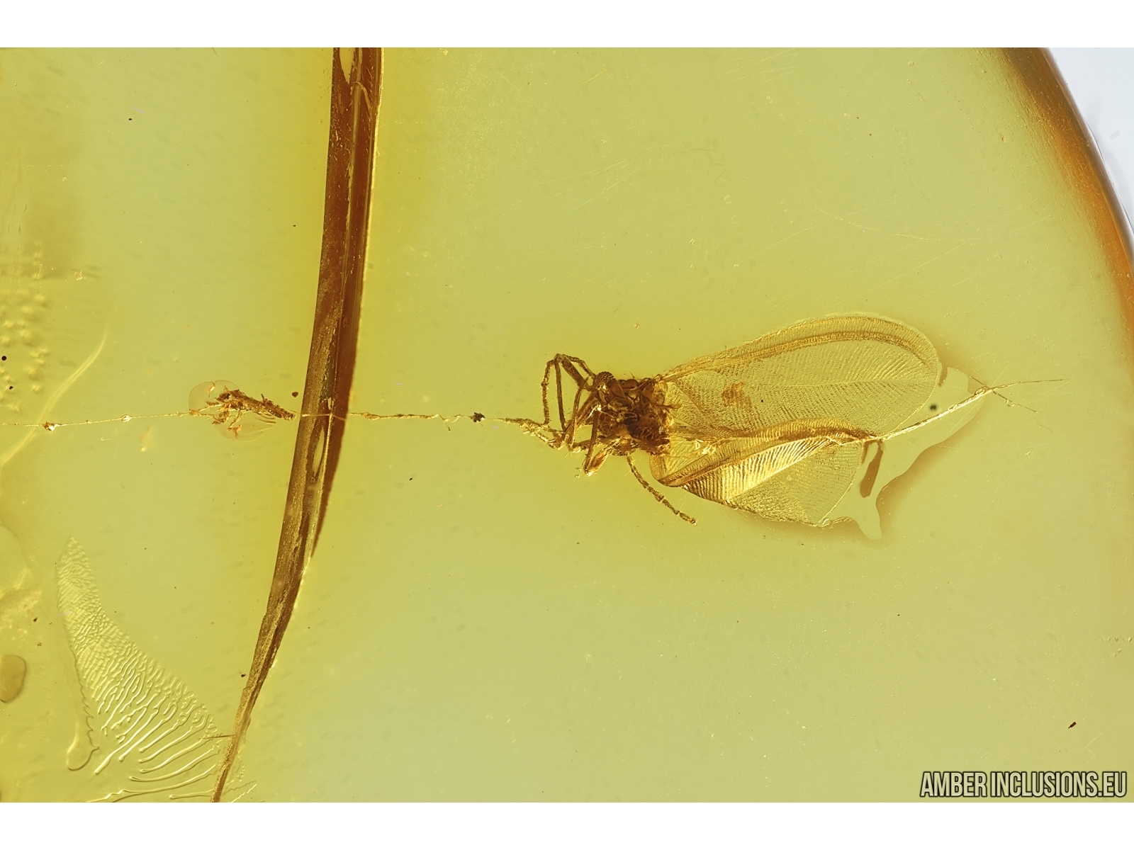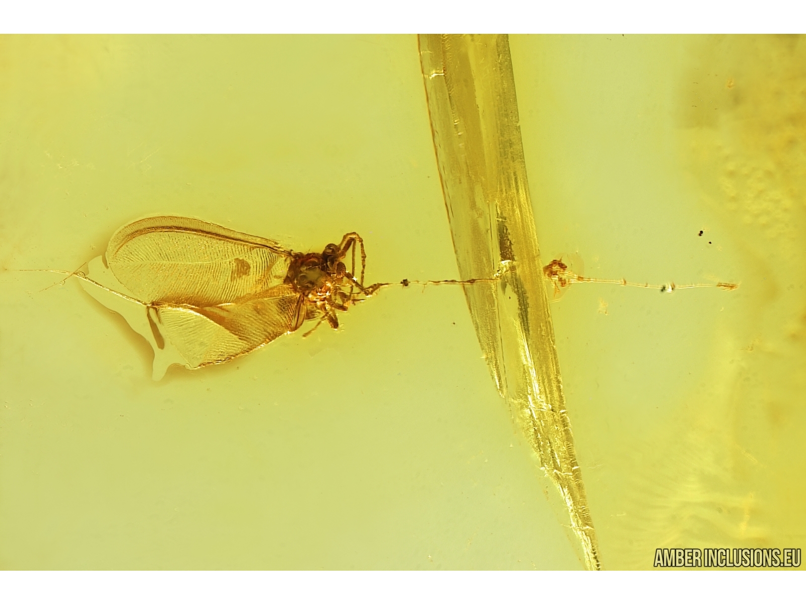 Baltic amber stone with fossil inclusion, trapped 34-56 million years ago - Coccid, Coccoidea in Spider Web.