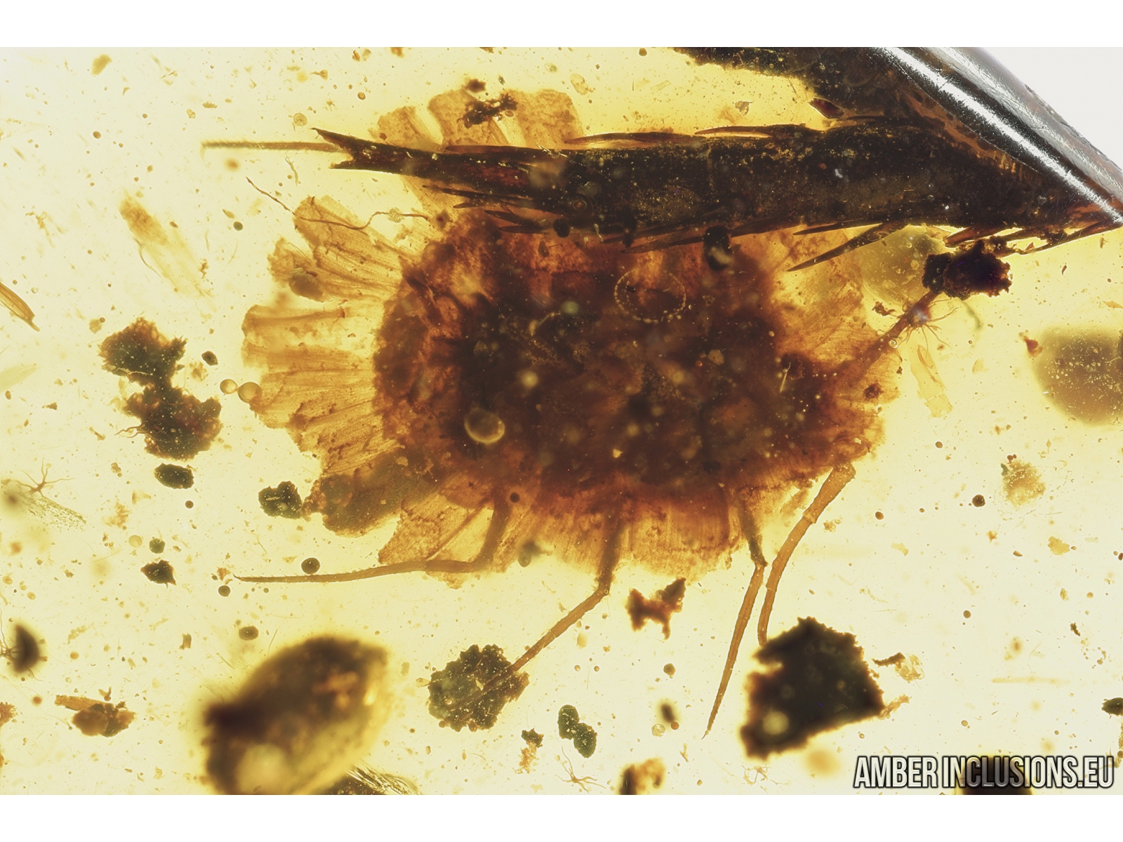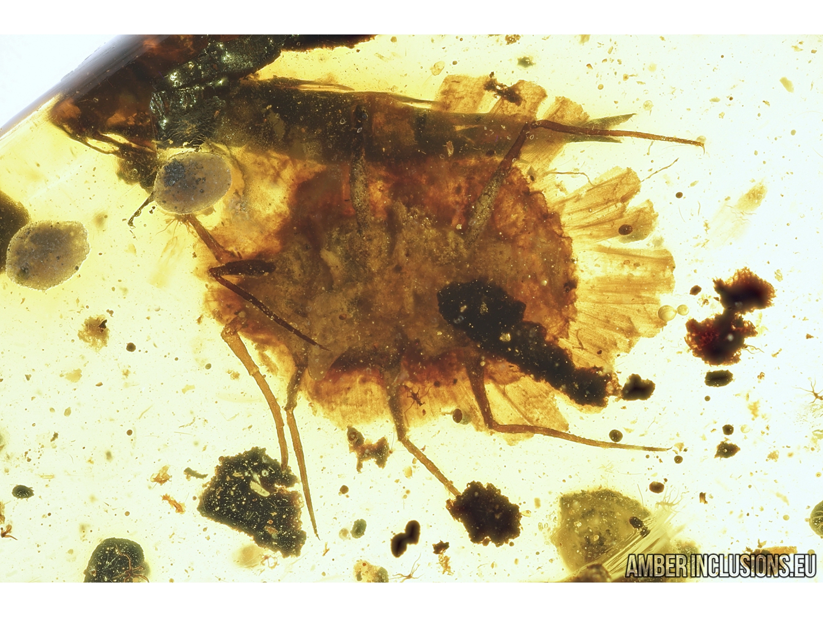 Burmite amber stone with fossil inclusion - Rare Coccid Ortheziidae.