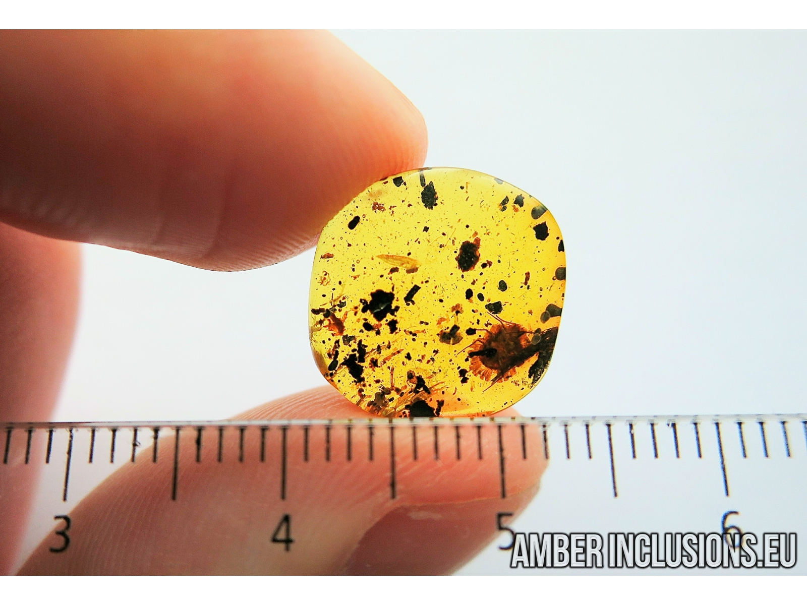 It weighs 0.5 grams. Measurements of stone 14x14x3mm, length of coccid ~3.5mm.