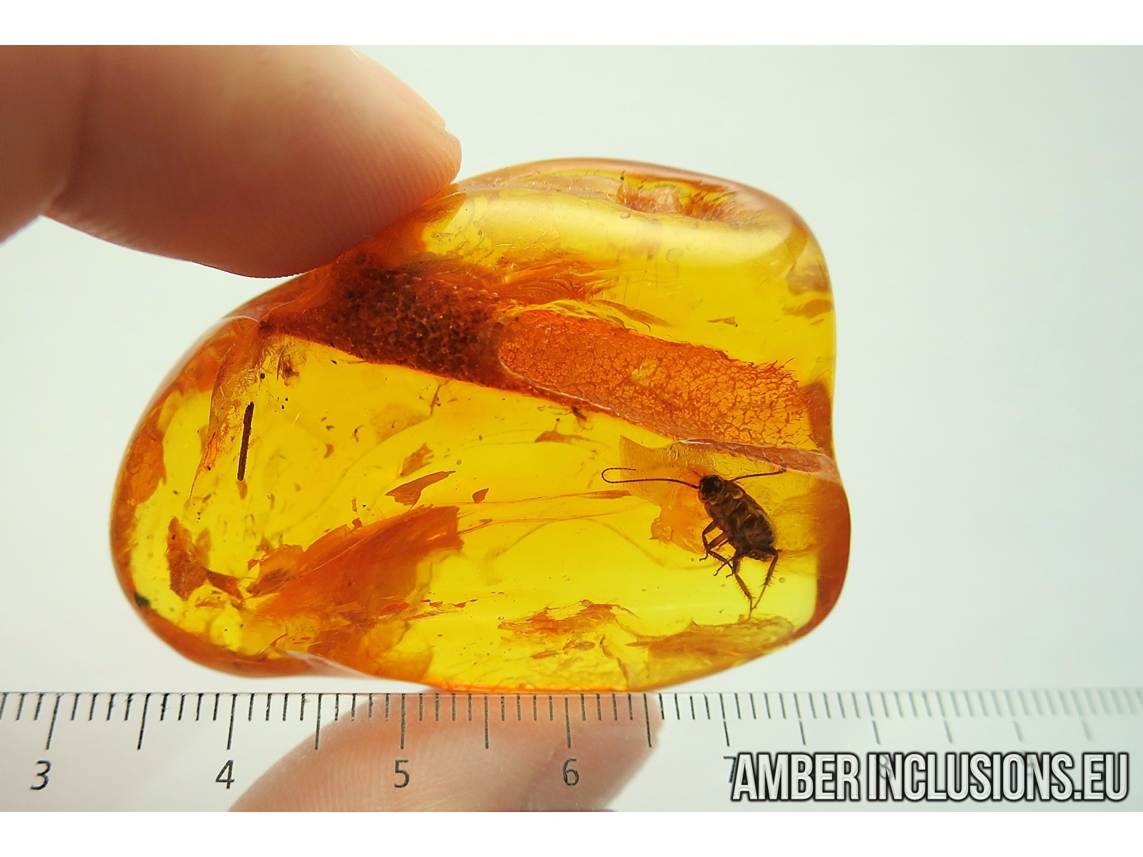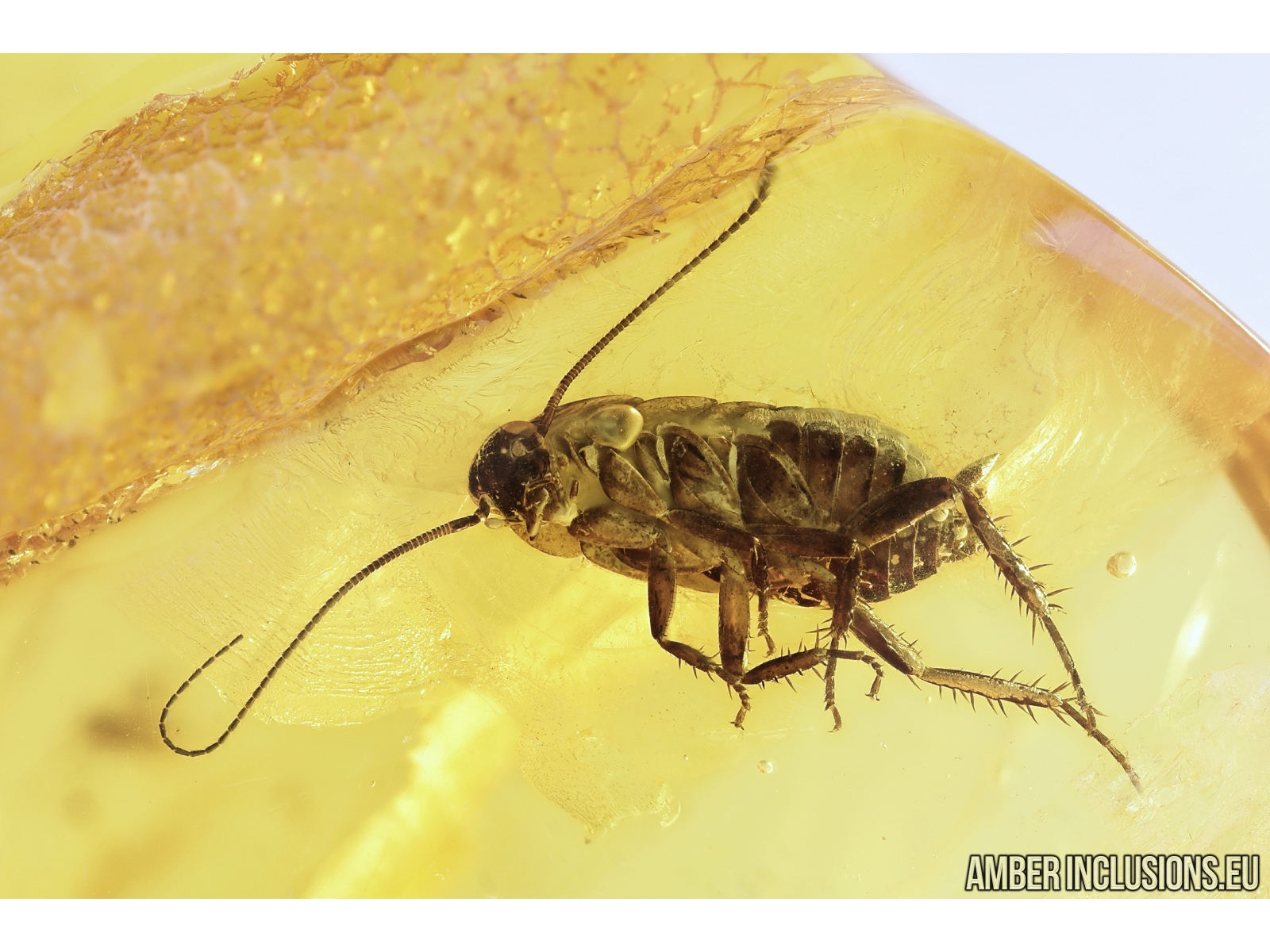 Baltic amber stone with fossil inclusion, trapped 34-56 million years ago -Cockroach, Blattaria.