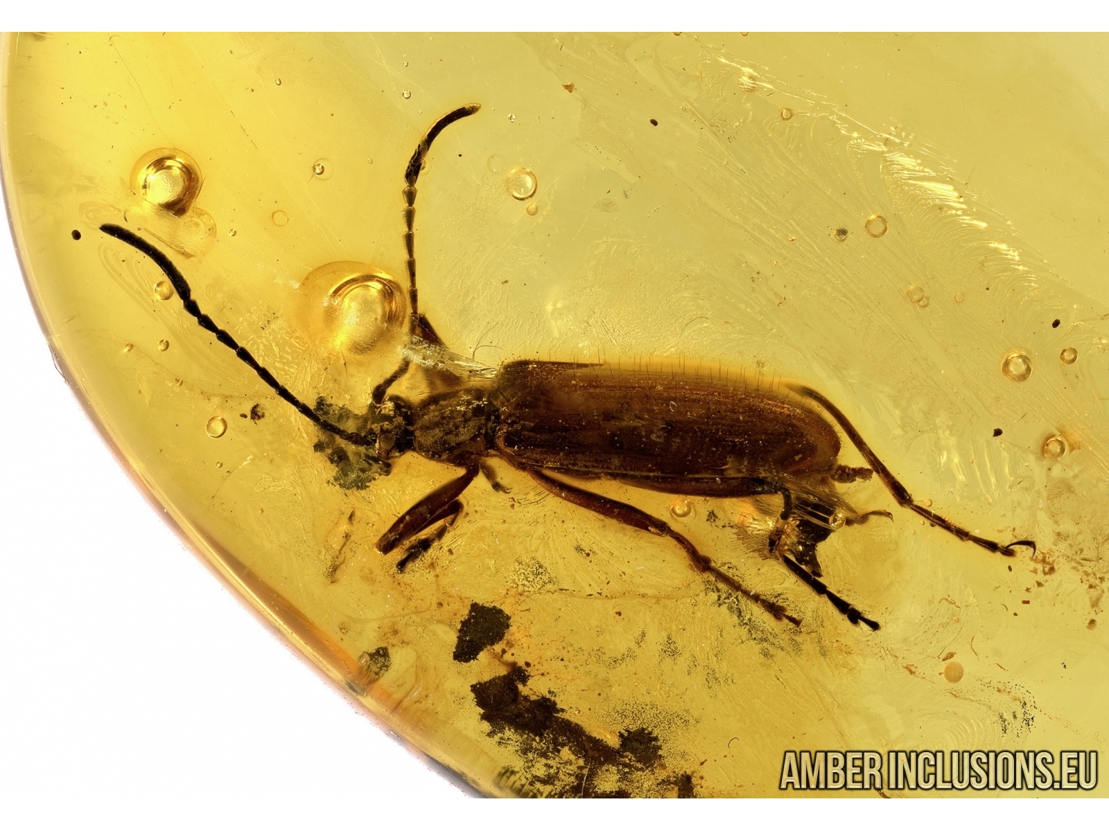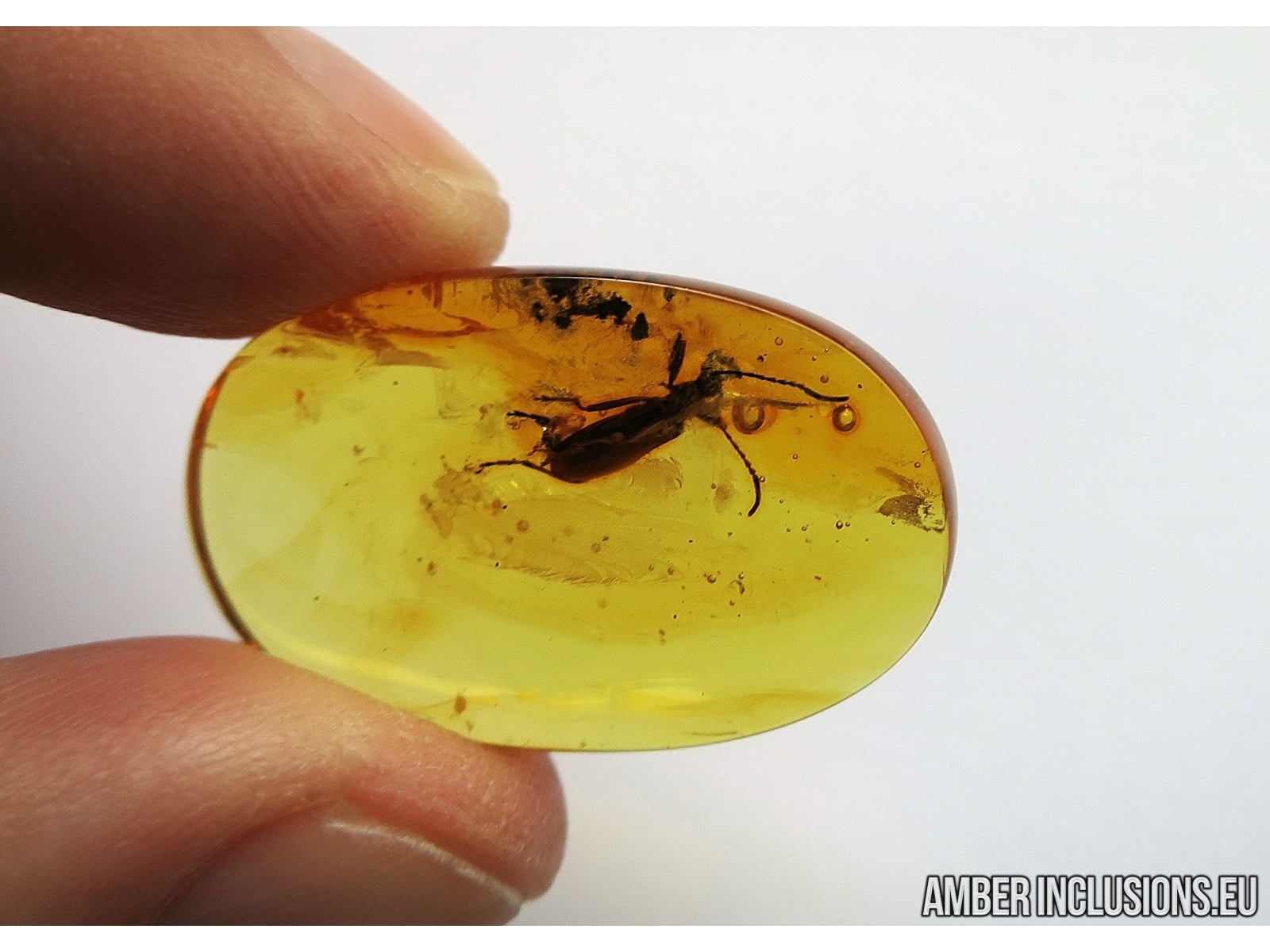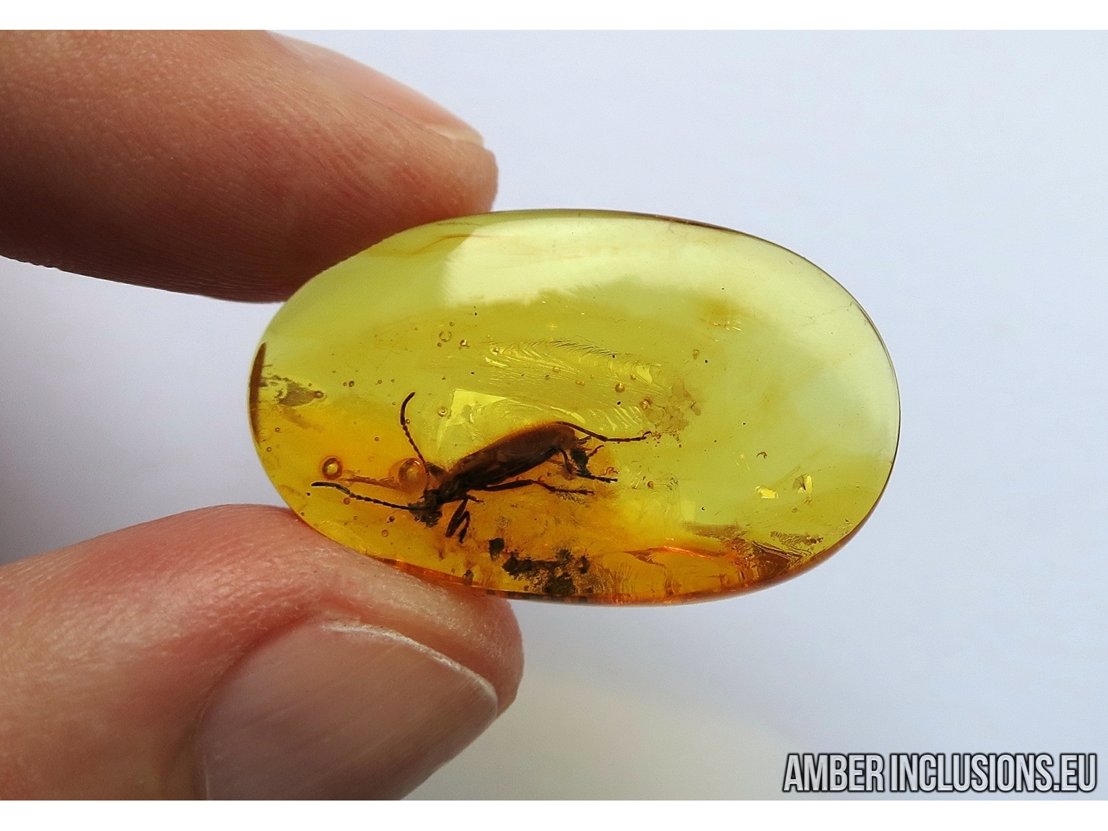 Baltic amber stone with fossil insect - Darkling beetle, Tenebrionidae, Lagriinae, Statira Baltica NOV SPEC.