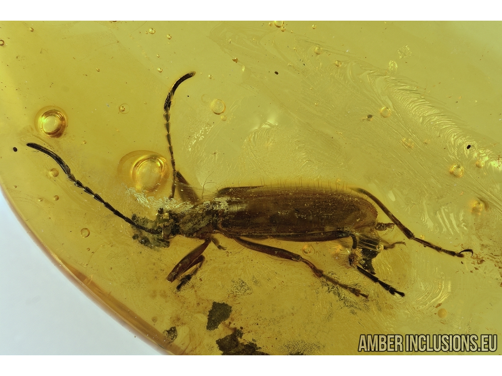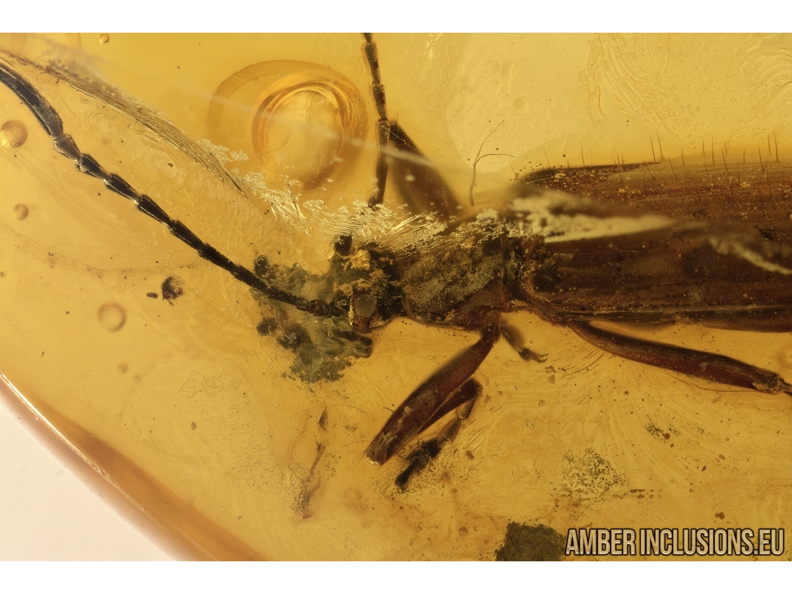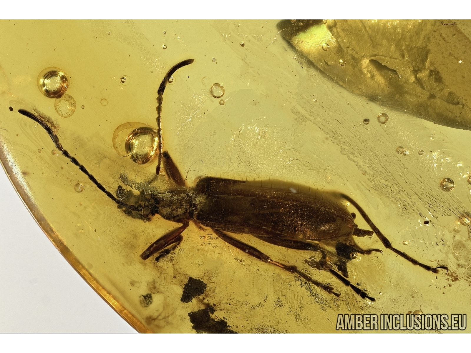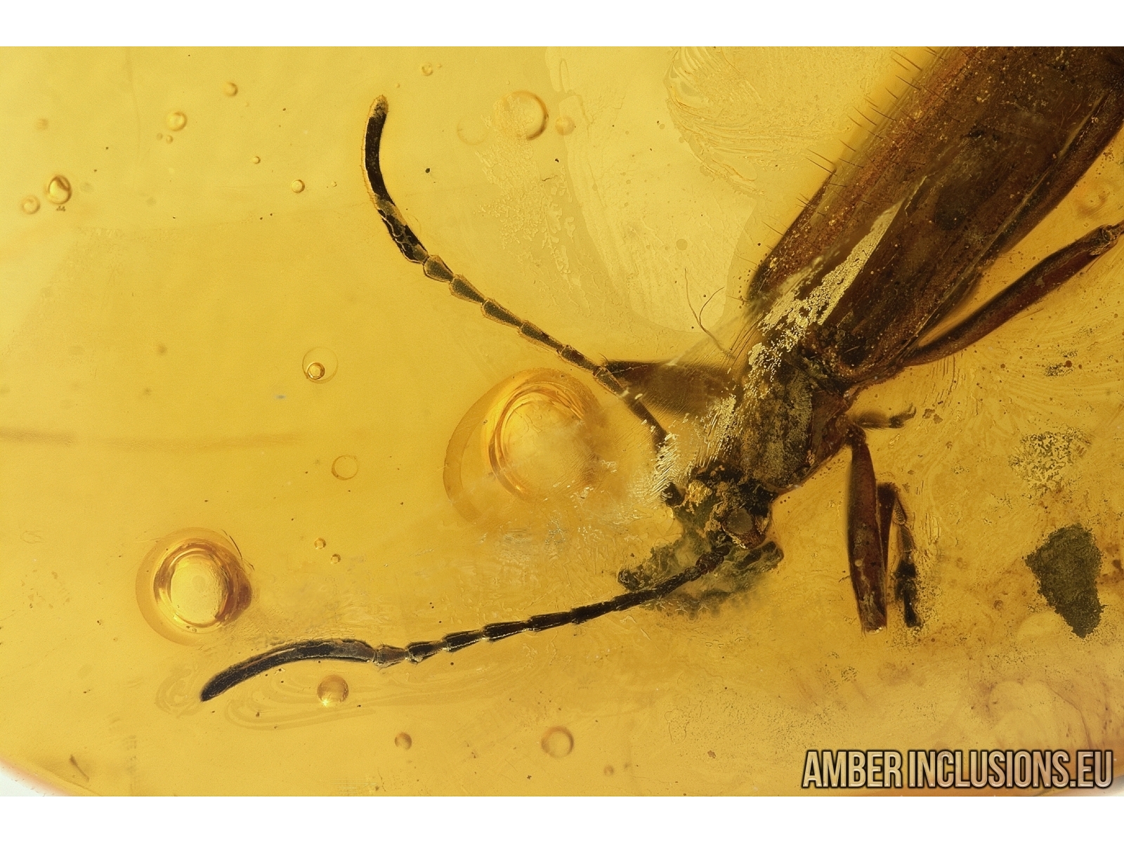 Baltic amber stone with fossil insect - Darkling beetle, Tenebrionidae, Lagriinae, Statira Baltica NOV SPEC.