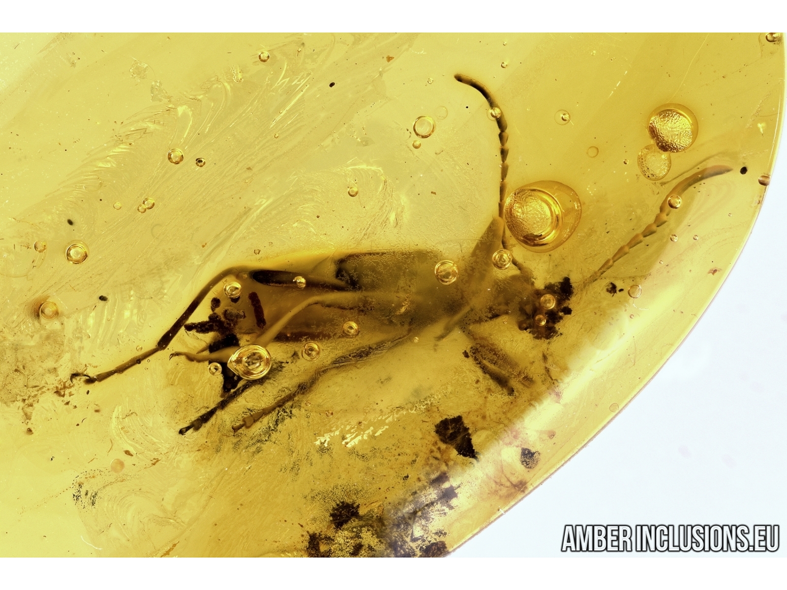 It weighs 3.4 grams. Measurements of stone 34x21x7mm, length of insect ~9mm