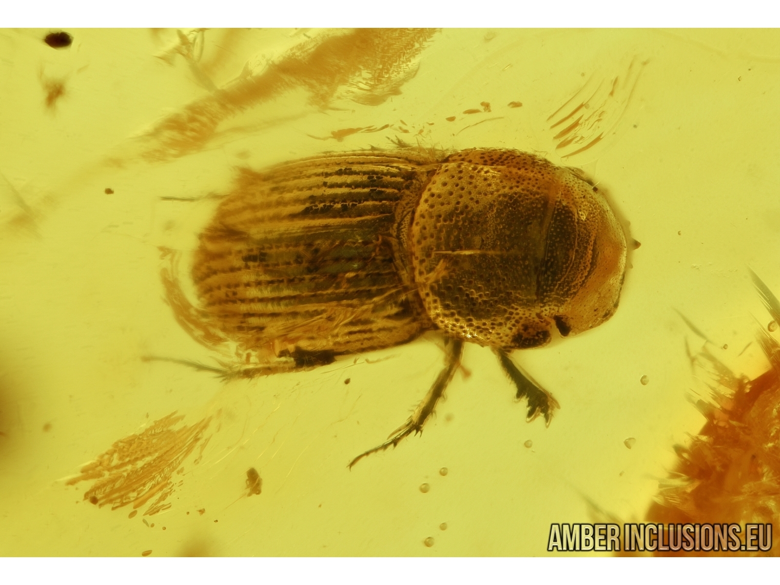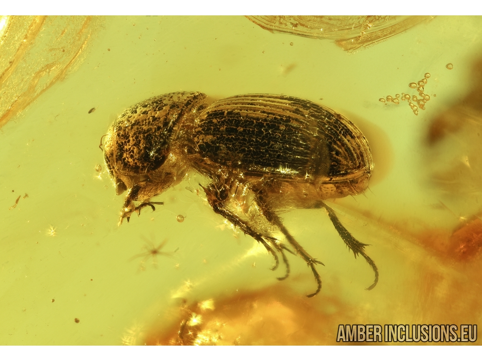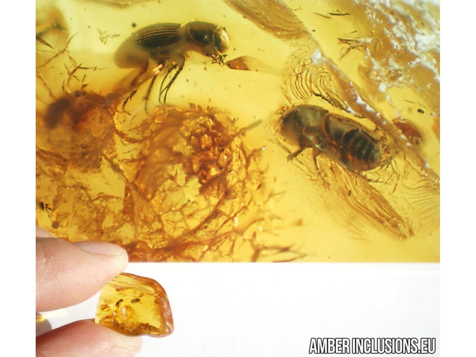 It weighs 1.4 grams. Measurements of stone 21x20x9mm, length of each beetle body and head ~ 3mm.