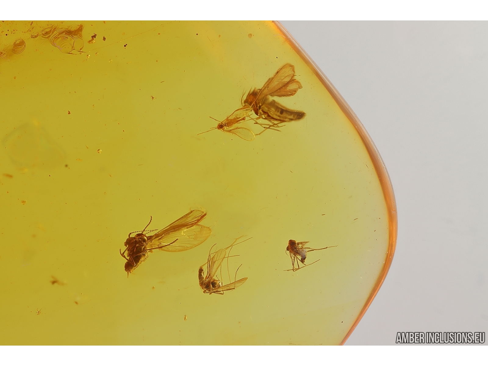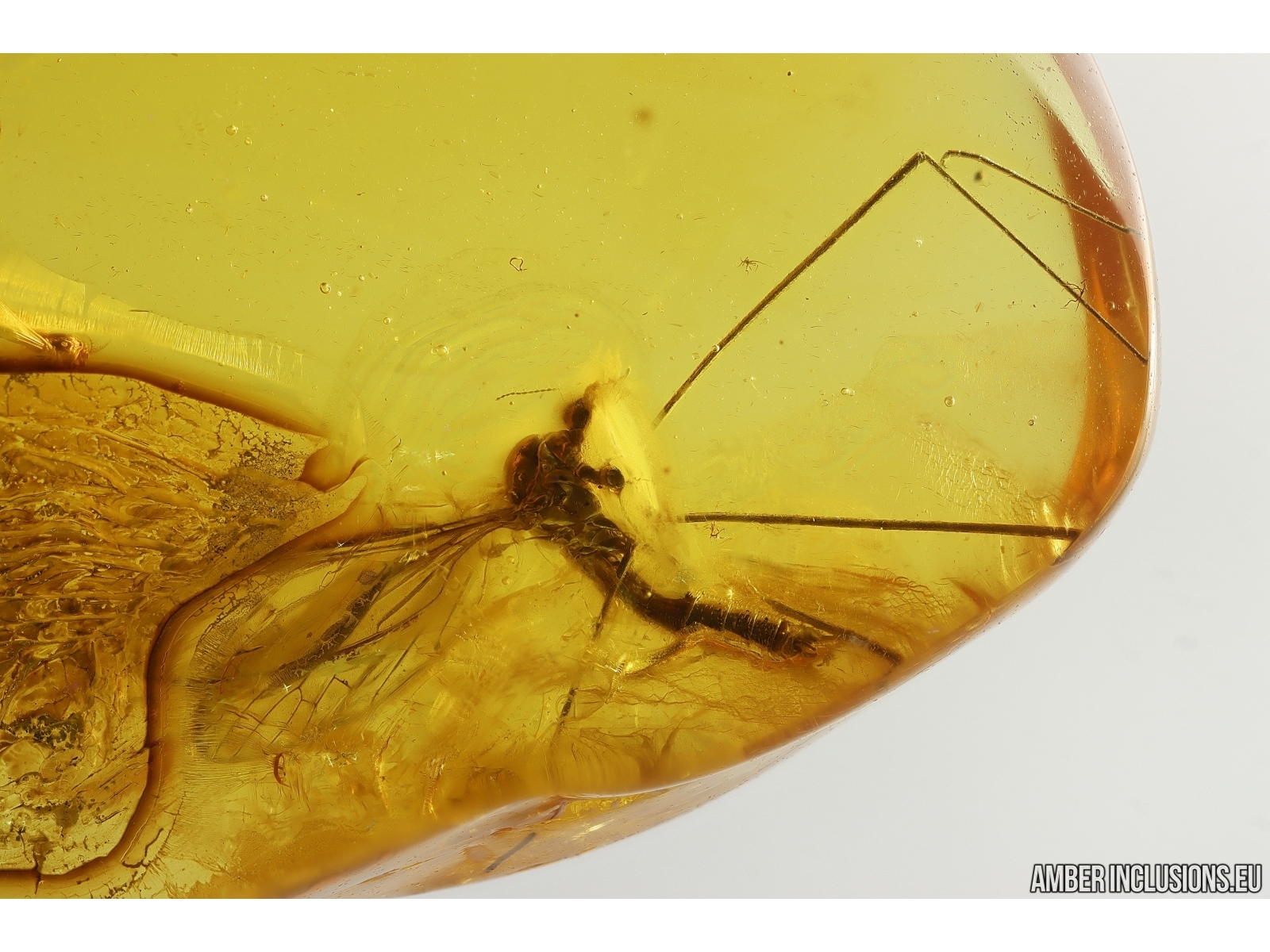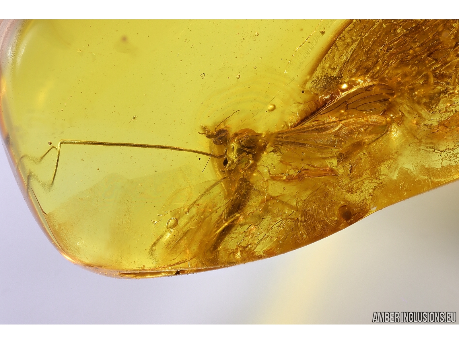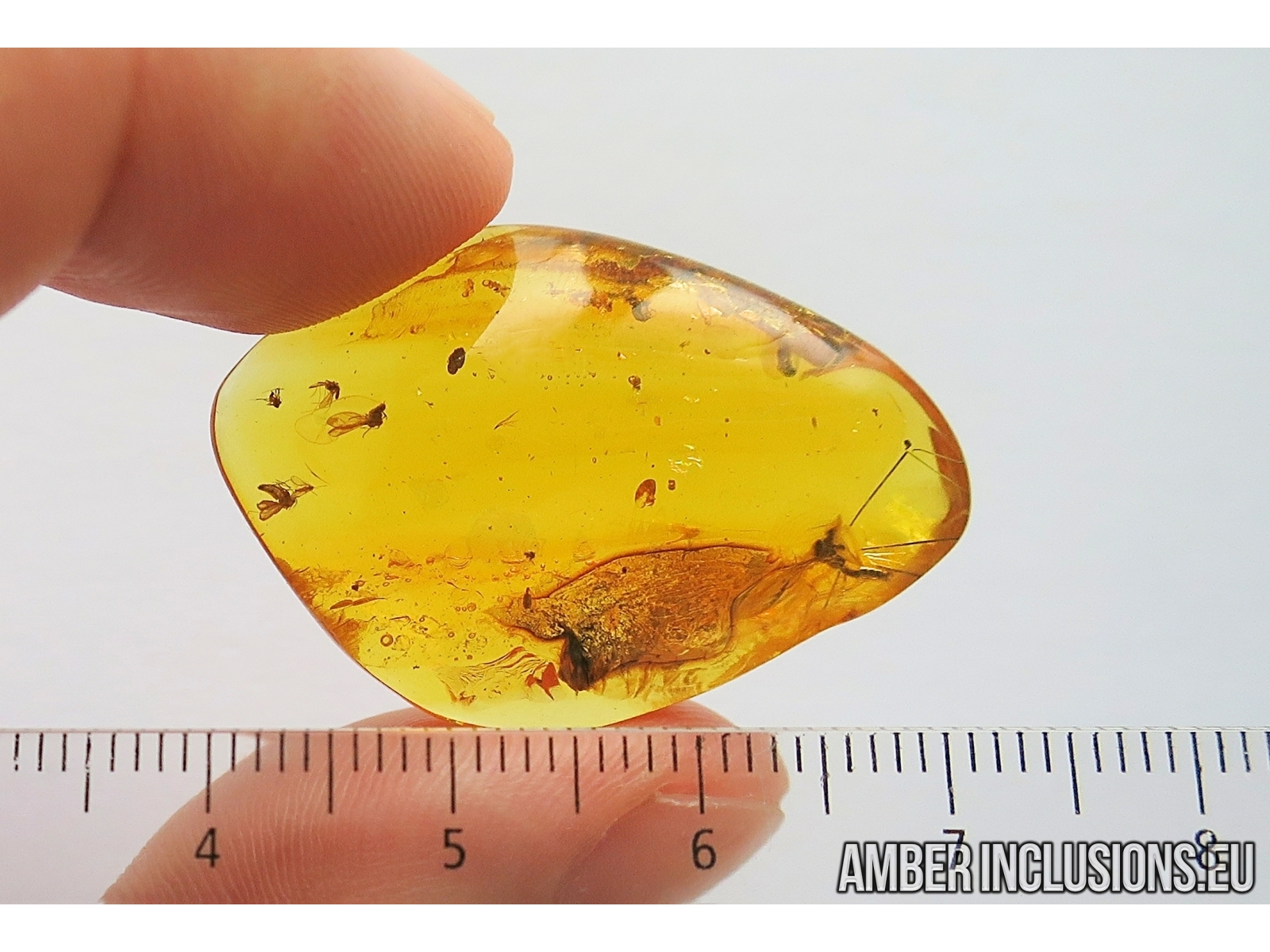 Baltic amber stone with fossil inclusions, trapped 34-56 million years ago - Crane fly Limoniidae and more.