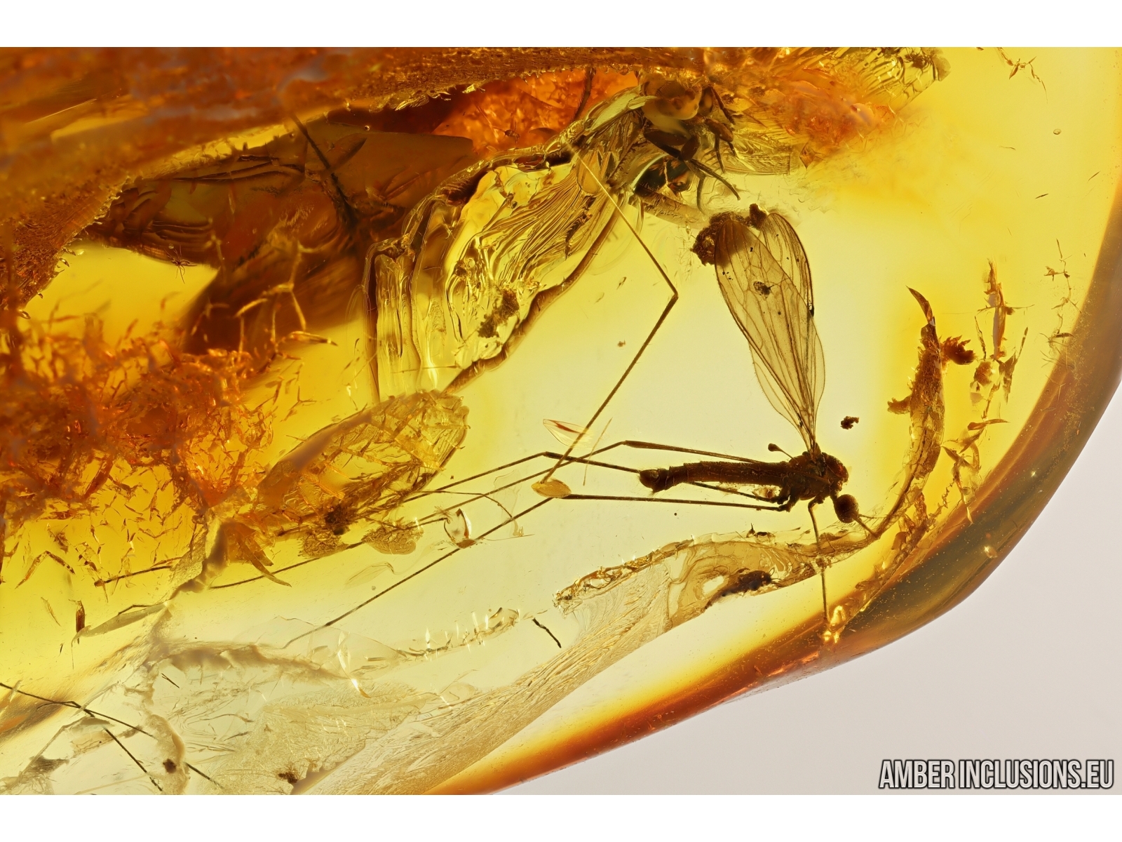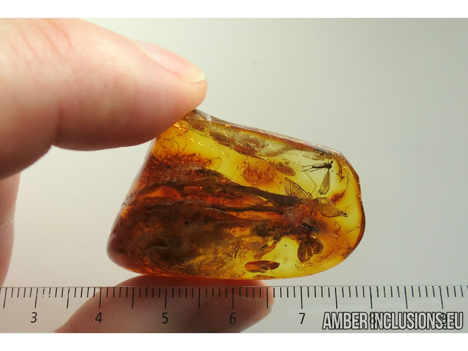 Baltic amber stone with fossil inclusions, trapped 34-56 million years ago - Crane fly Limoniidae and More.