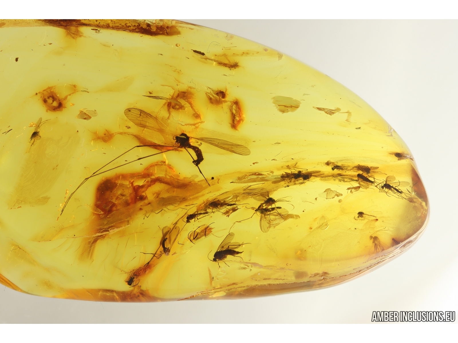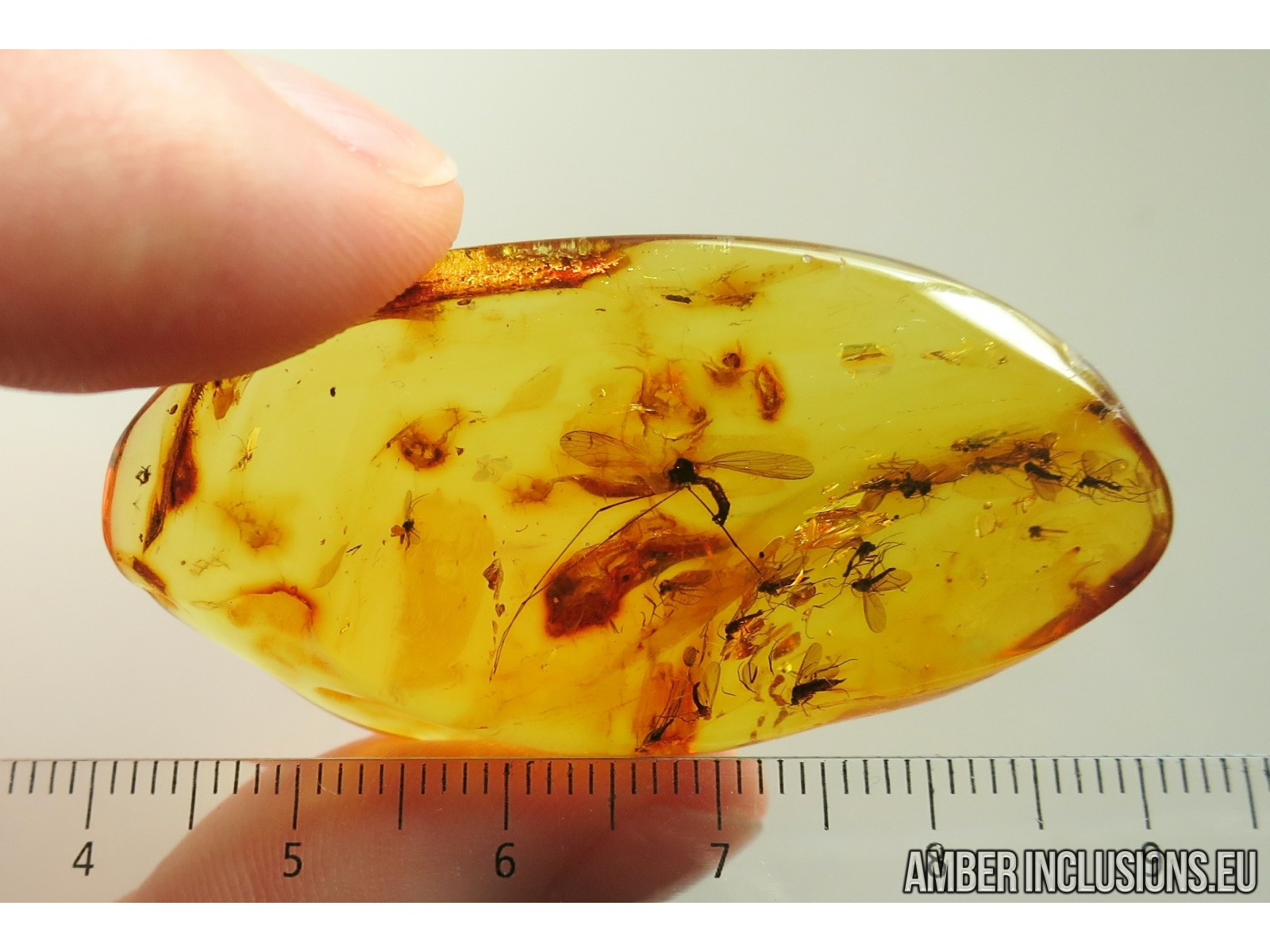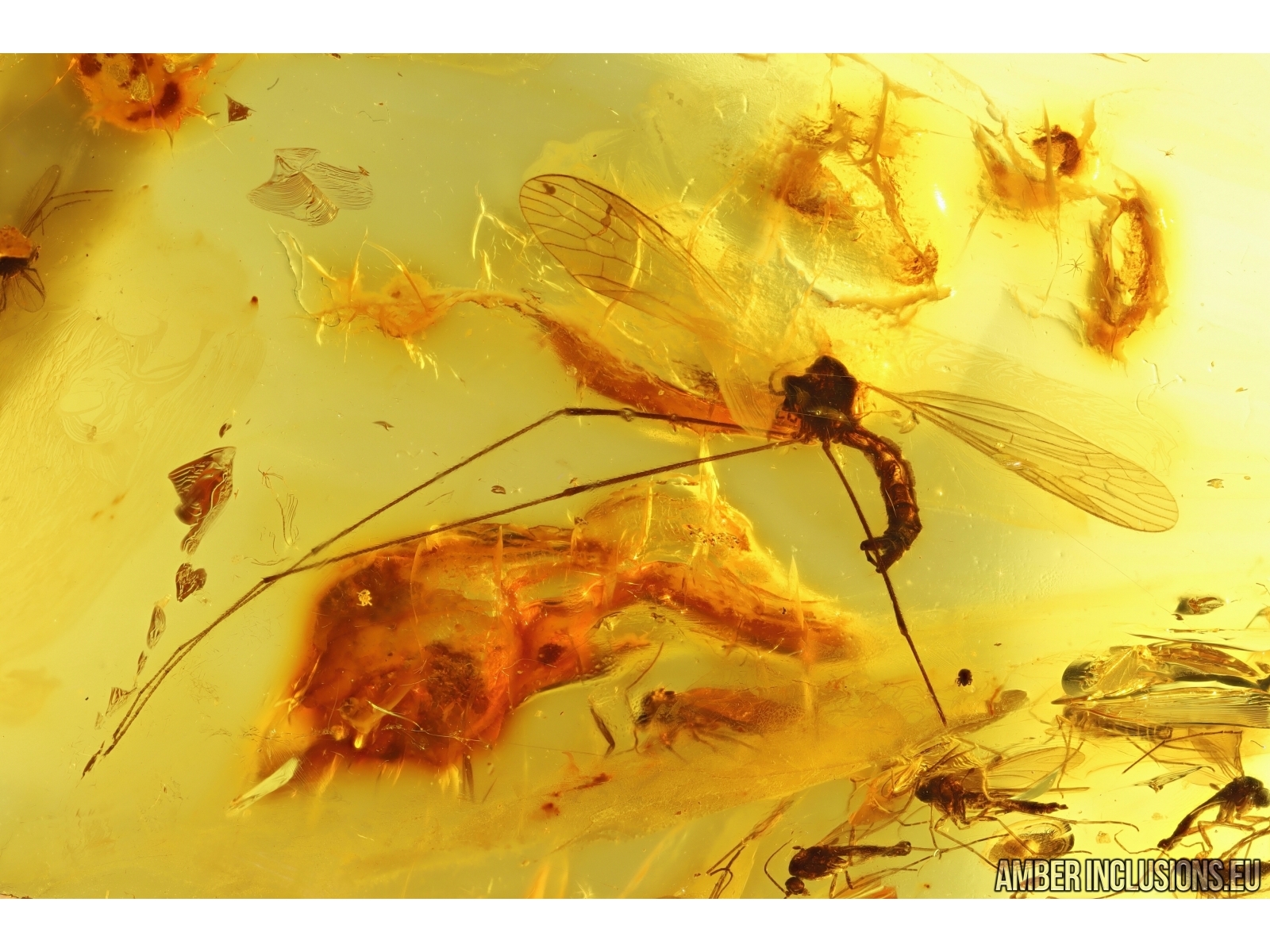 Baltic amber stone with fossil inclusions, trapped 34-56 million years ago - Crane fly Limoniidae and More.