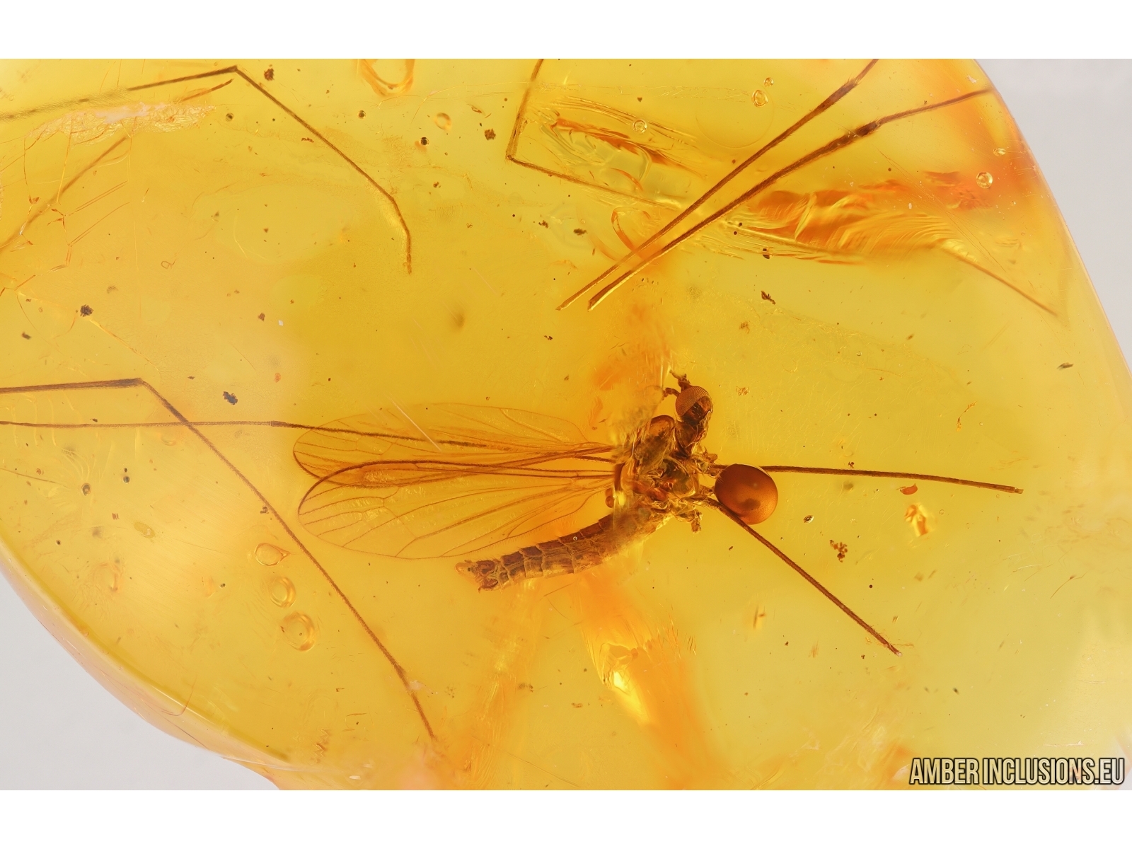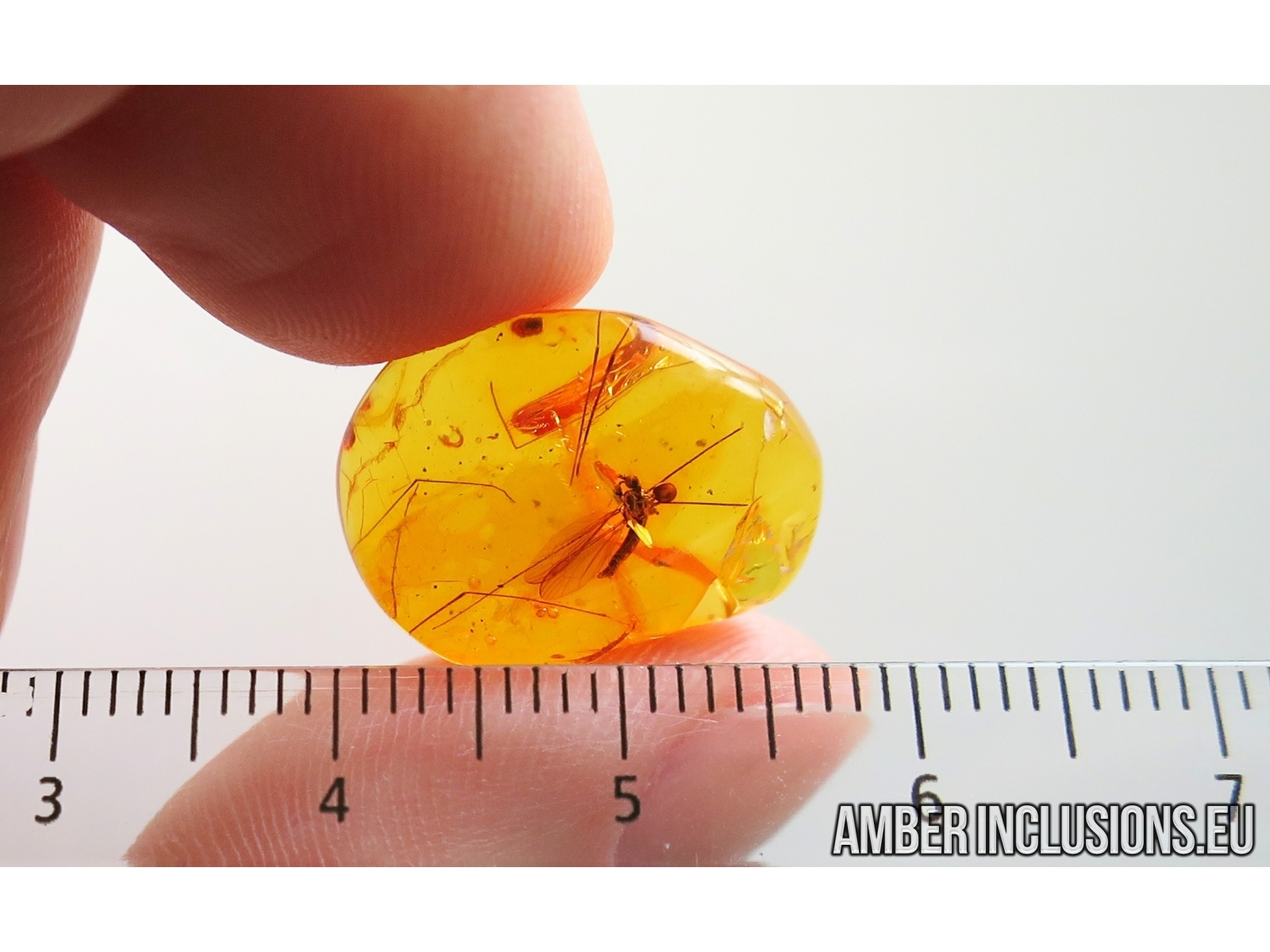 Baltic amber stone with fossil inclusion, trapped 34-56 million years ago - Crane fly Limoniidae Dicranomyia