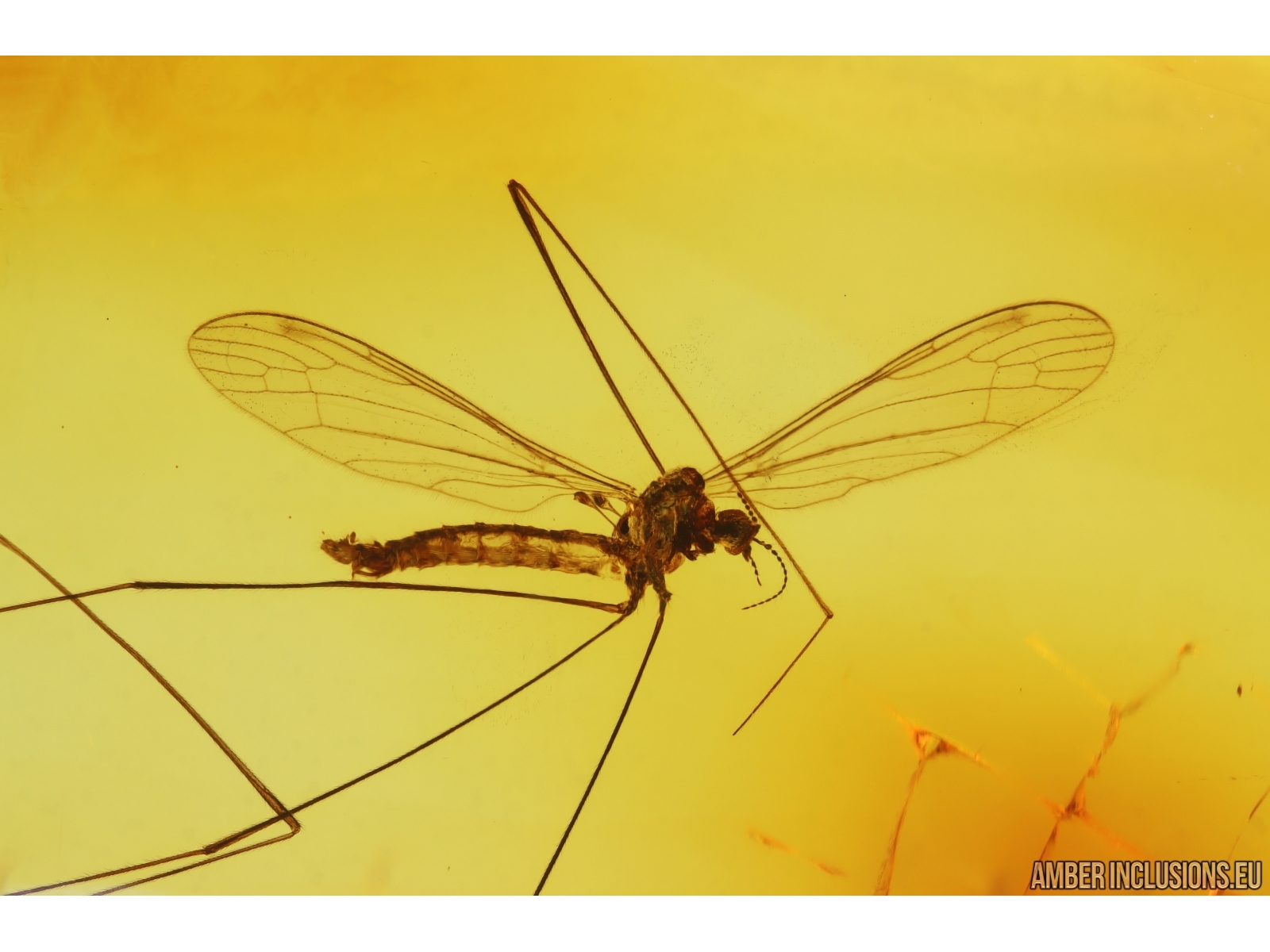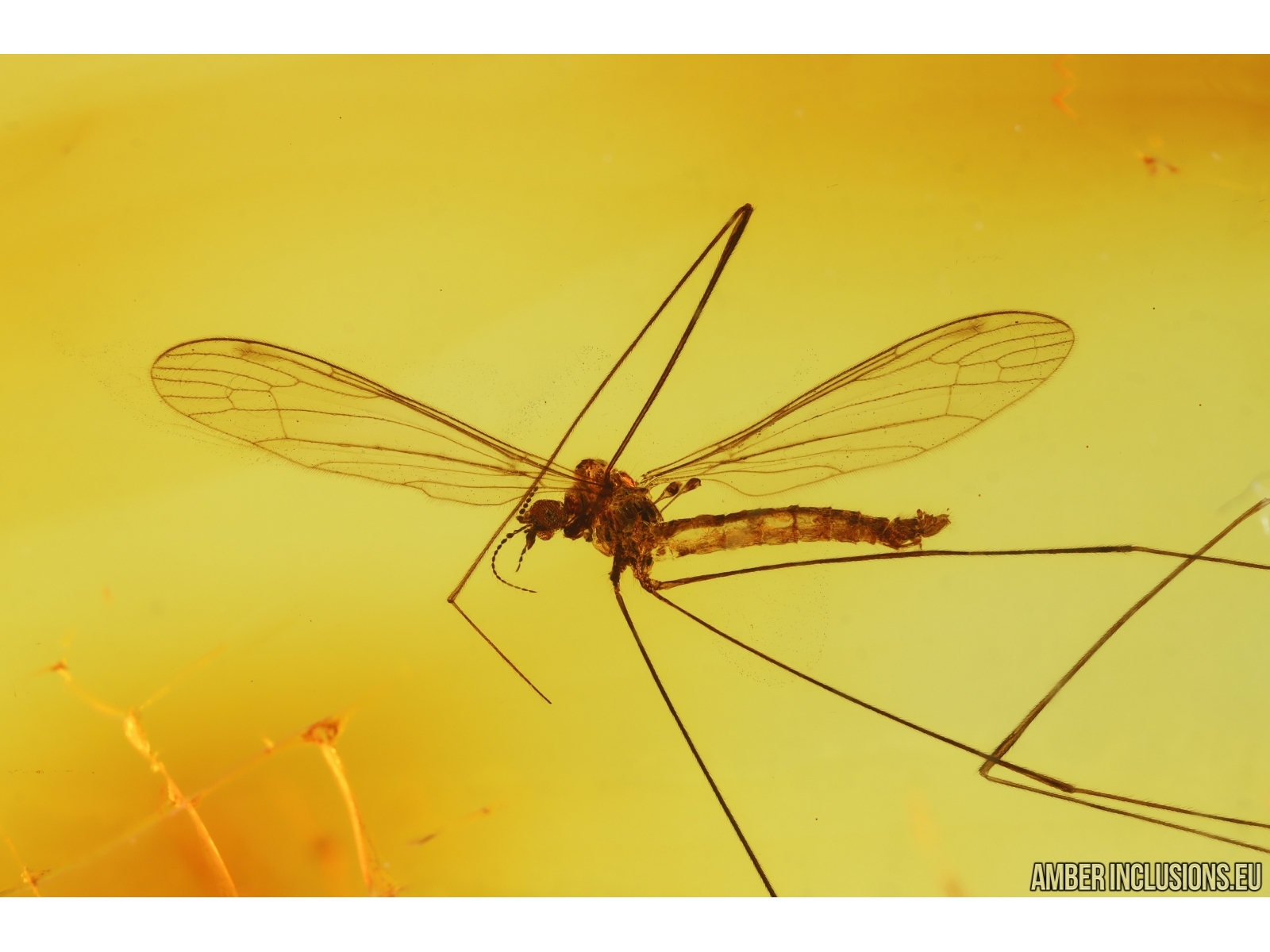 Baltic amber stone with fossil inclusion, trapped 34-56 million years ago - Crane fly Limoniidae.