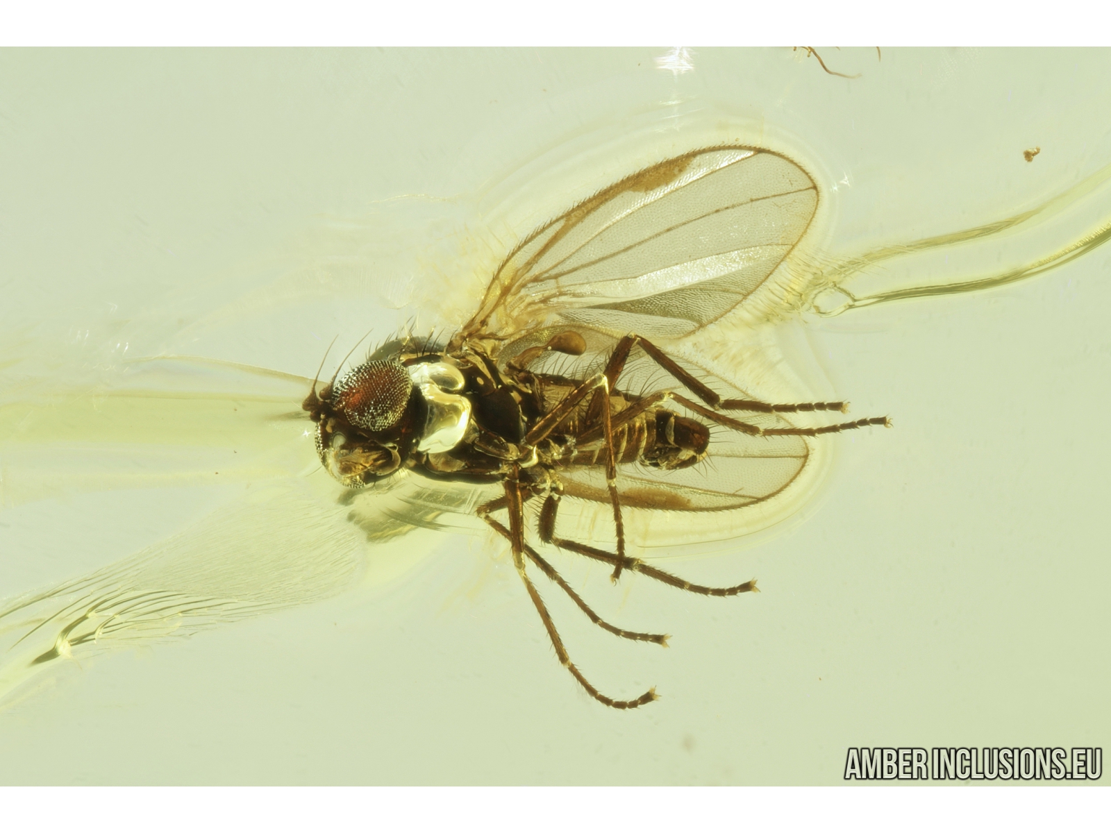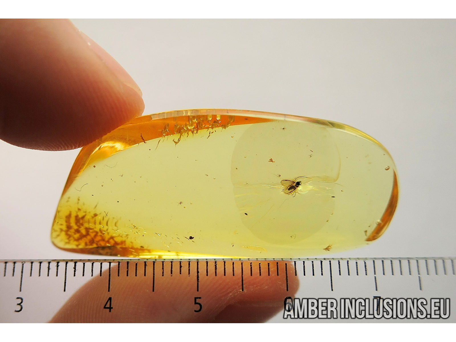 Ukrainian Rovno amber stone with fossil insect - Dance fly Empididae.