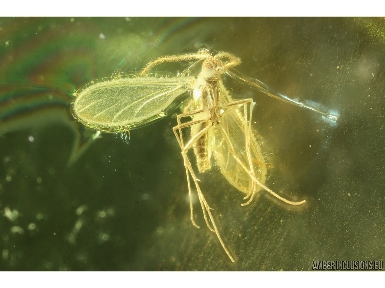Baltic amber stone with fossil inclusion, trapped 34-56 million years ago - Dark-Winged fungus gnat Sciaridae.