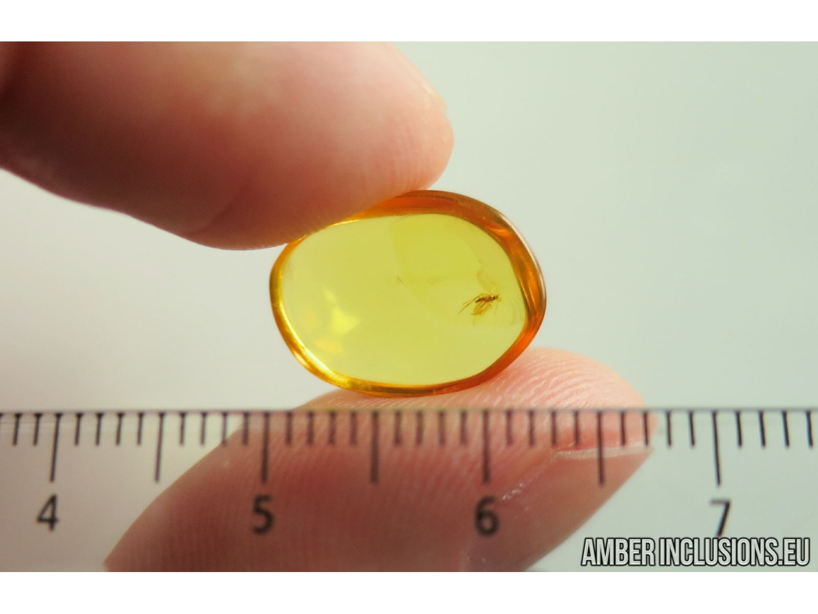 It weighs 0.4 g. Measurements of stone 15x11x4mm, length of gnat ~1.5mm.