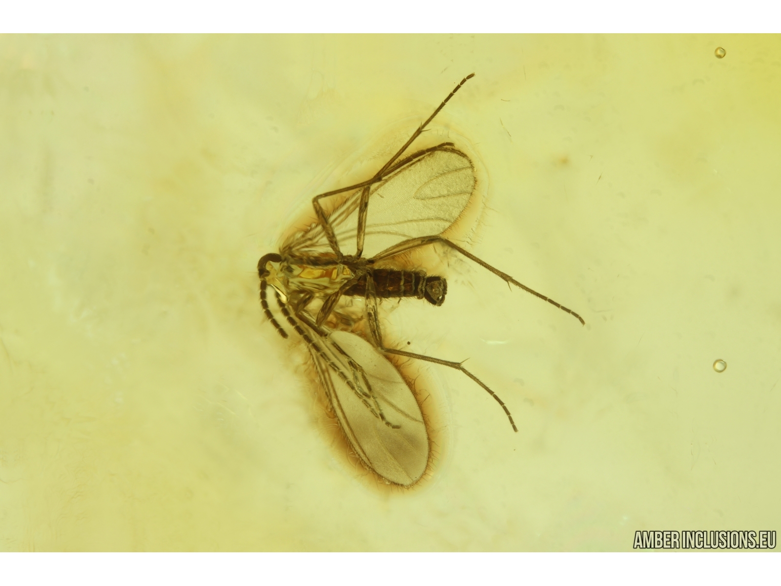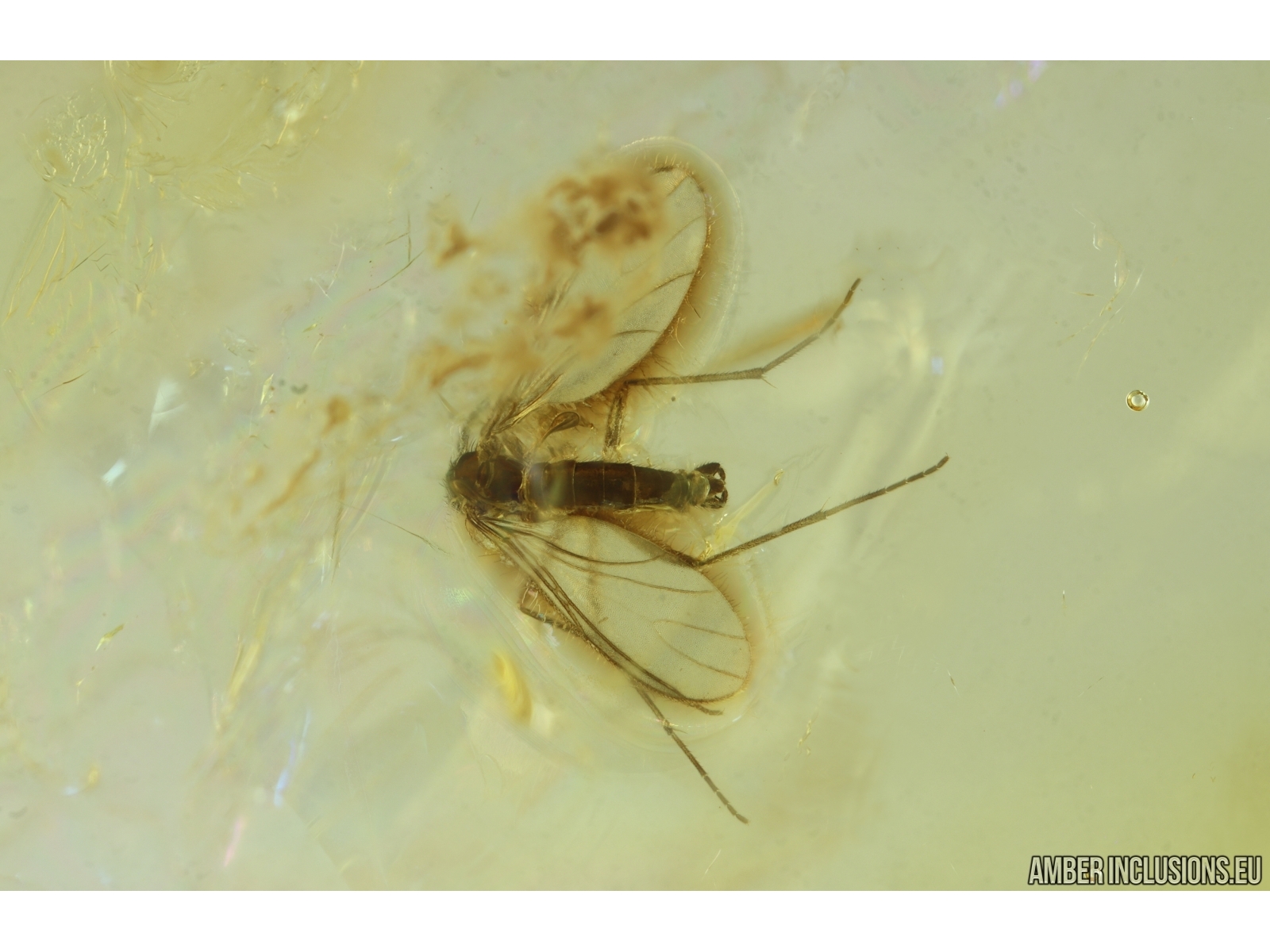 Ukrainian Rovno amber stone with fossil inclusion, trapped 34-56 million years ago -Dark-Winged fungus gnat Sciaridae.