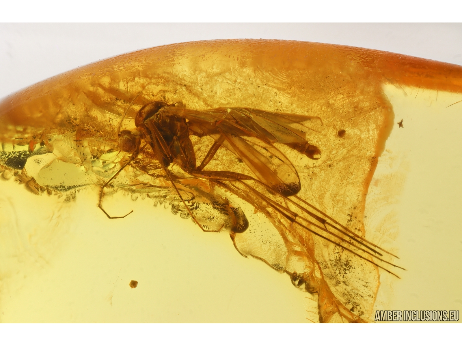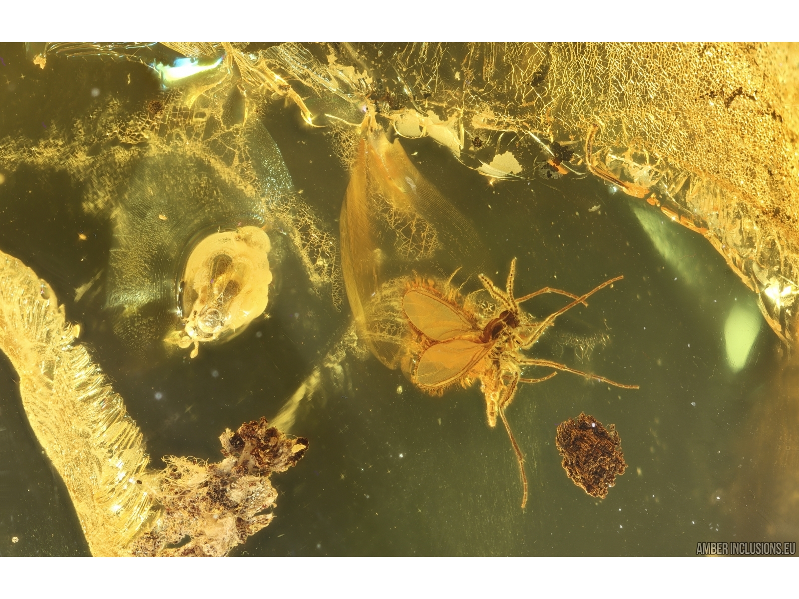 Baltic amber stone with fossil inclusions, , trapped 34-56 million years ago - Dark-Winged fungus gnat Sciaridae, Spider, Wasp and More.
