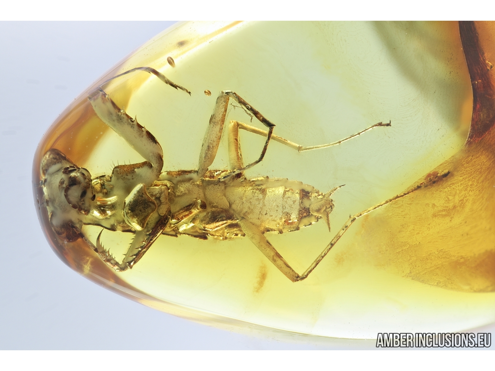 Baltic amber stone with fossil insect - Extremely Rare, Adult Praying Mantis, Mantodea.