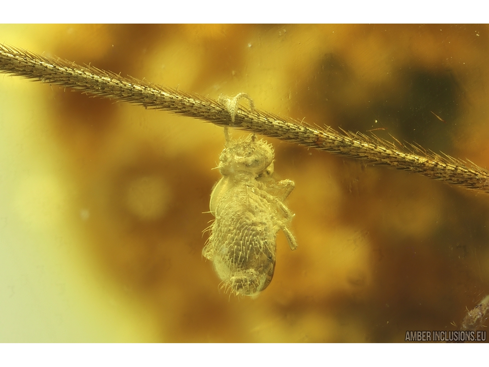 Baltic amber stone with fossil inclusion - Extremely Rare Phoresy Springtail Collembola.