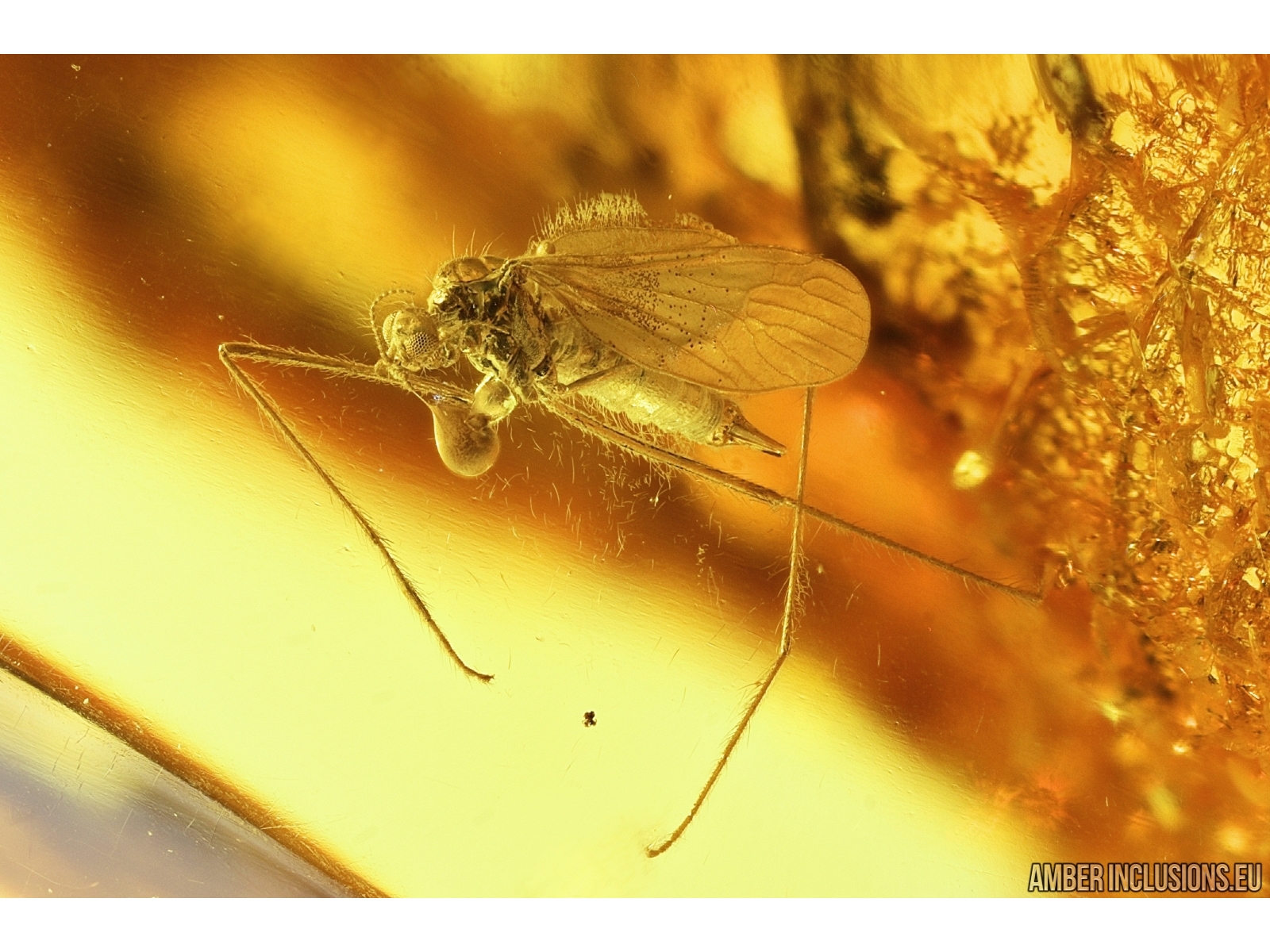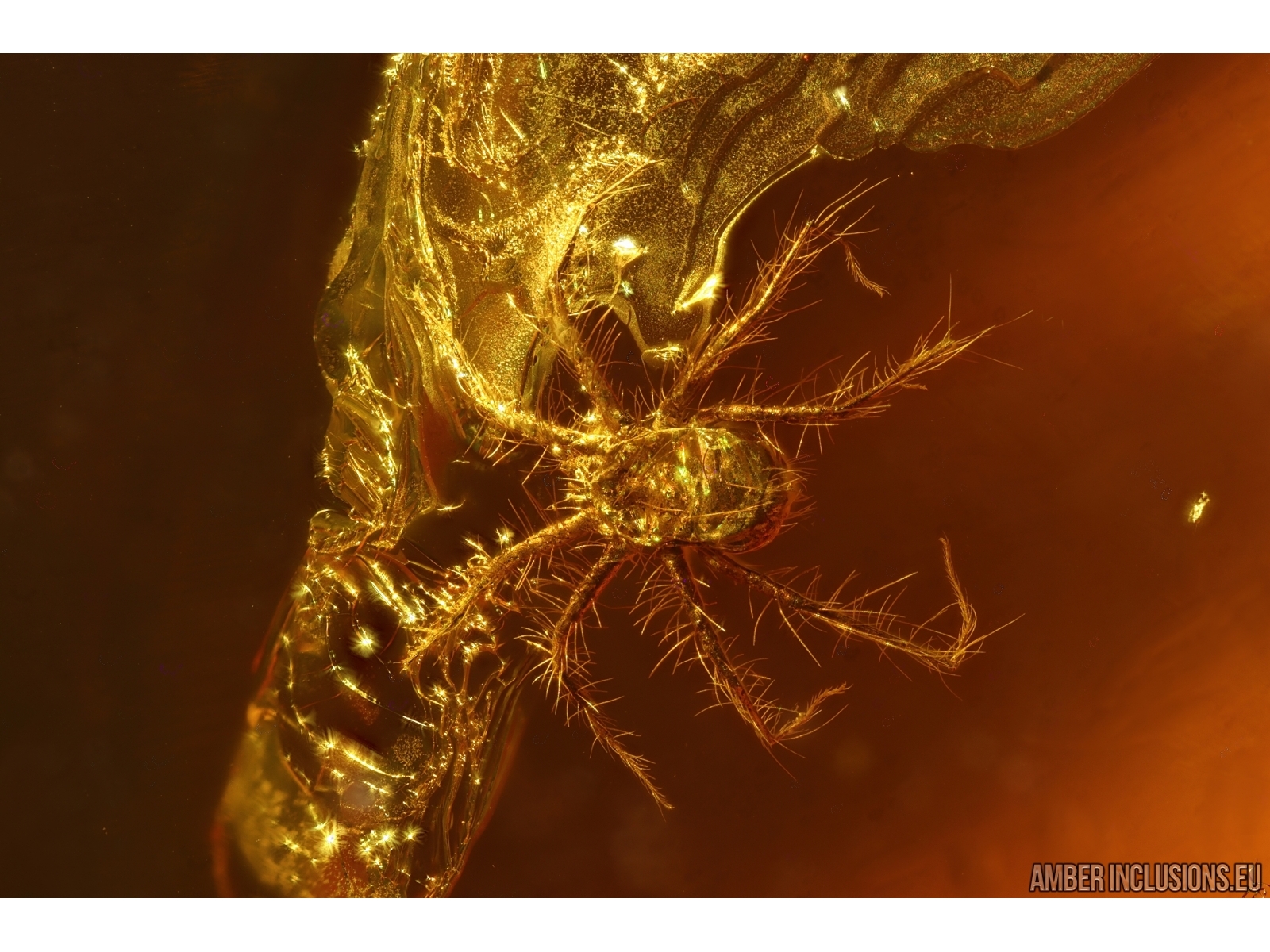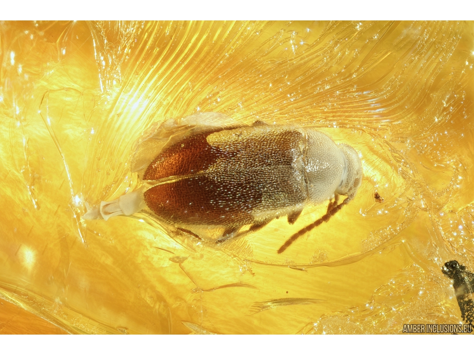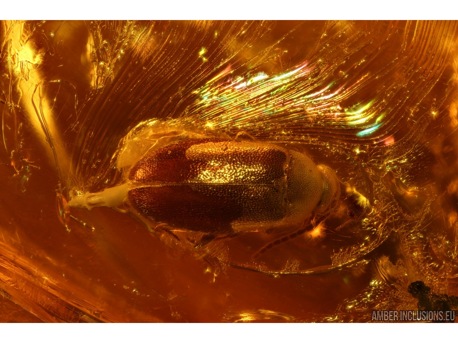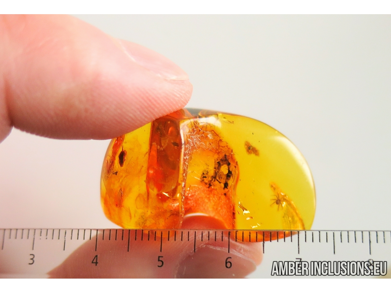 Baltic amber stone with fossil inclusions, trapped 34-56 million years ago -False Flower Beetle Scraptiidae, Mite Acari and Gnat.