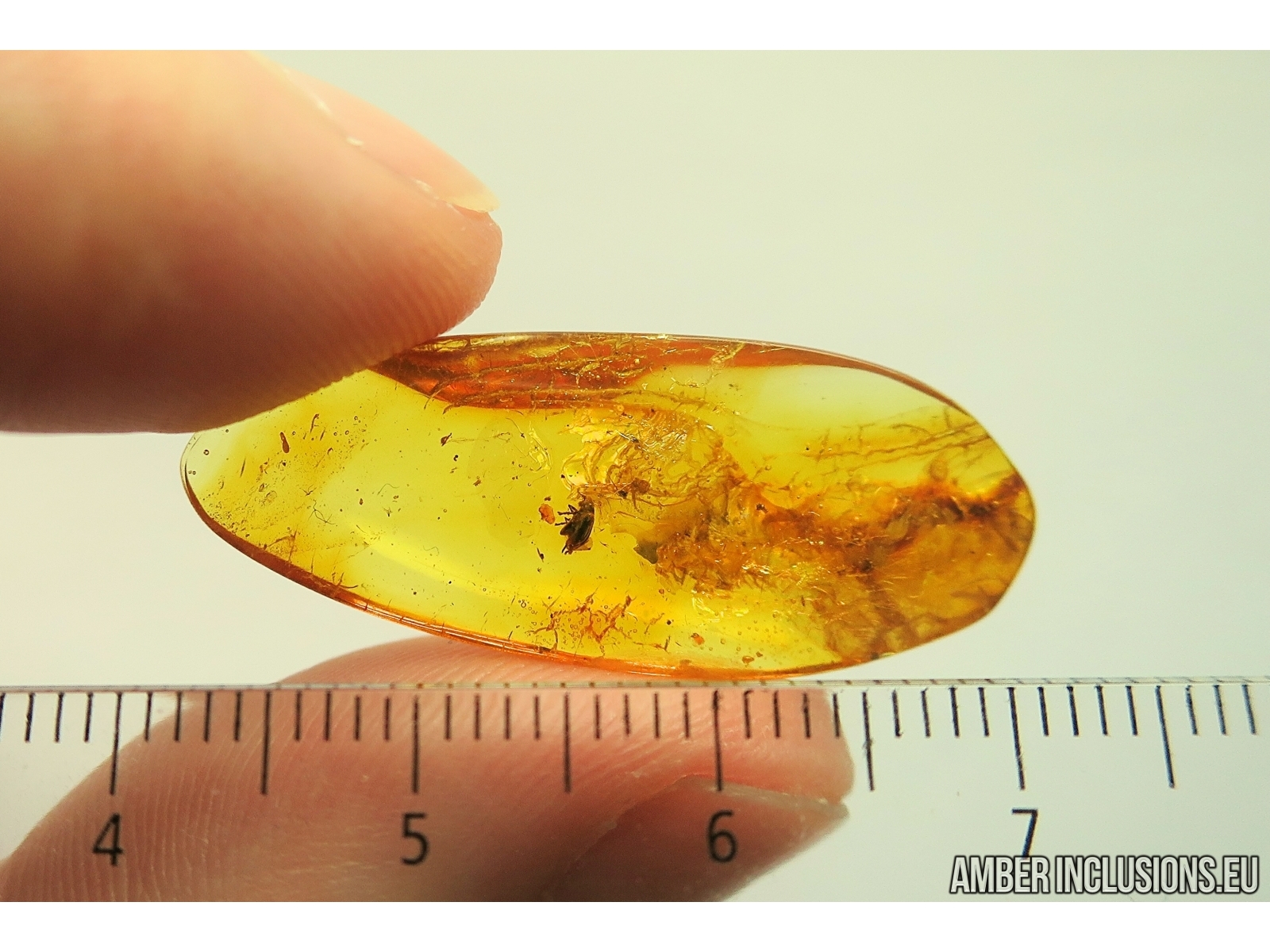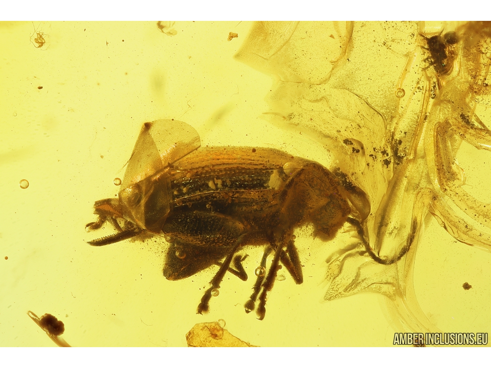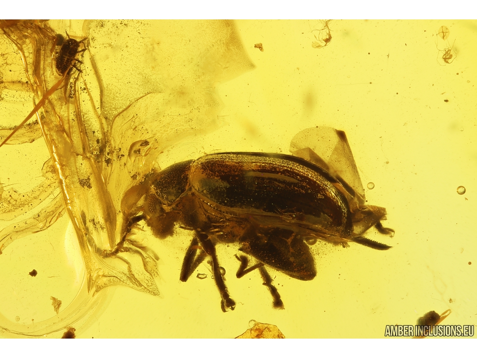 Baltic amber stone with fossil inclusions, trapped 34-56 million years ago - Flea Beetle Chrysomelidae Alticini Psyllototus and Mite Acari.