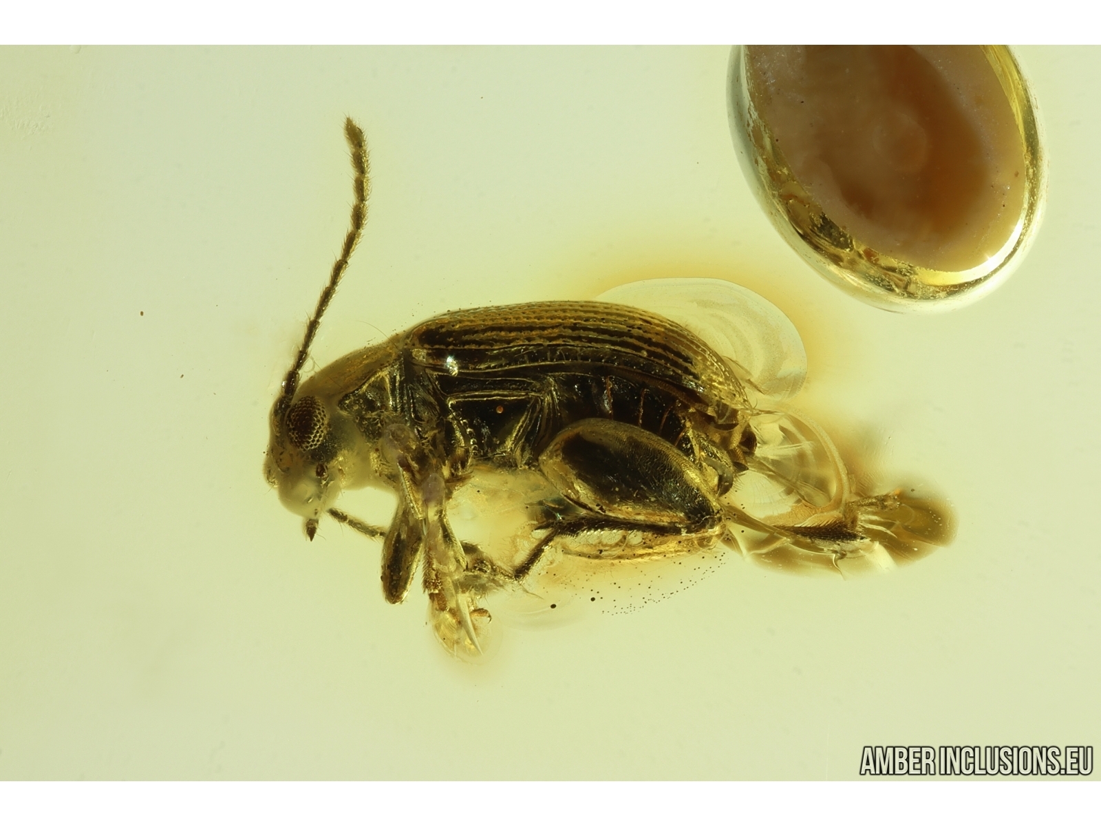 Ukrainian Rovno amber stone with fossil inclusion, trapped 34-56 million years ago - Flea Beetle Chrysomelidae Alticini Psyllototus.