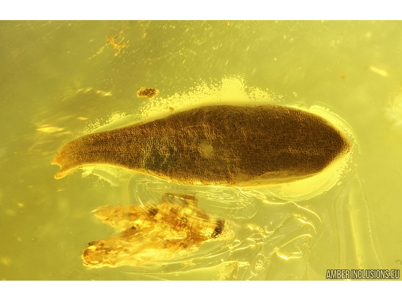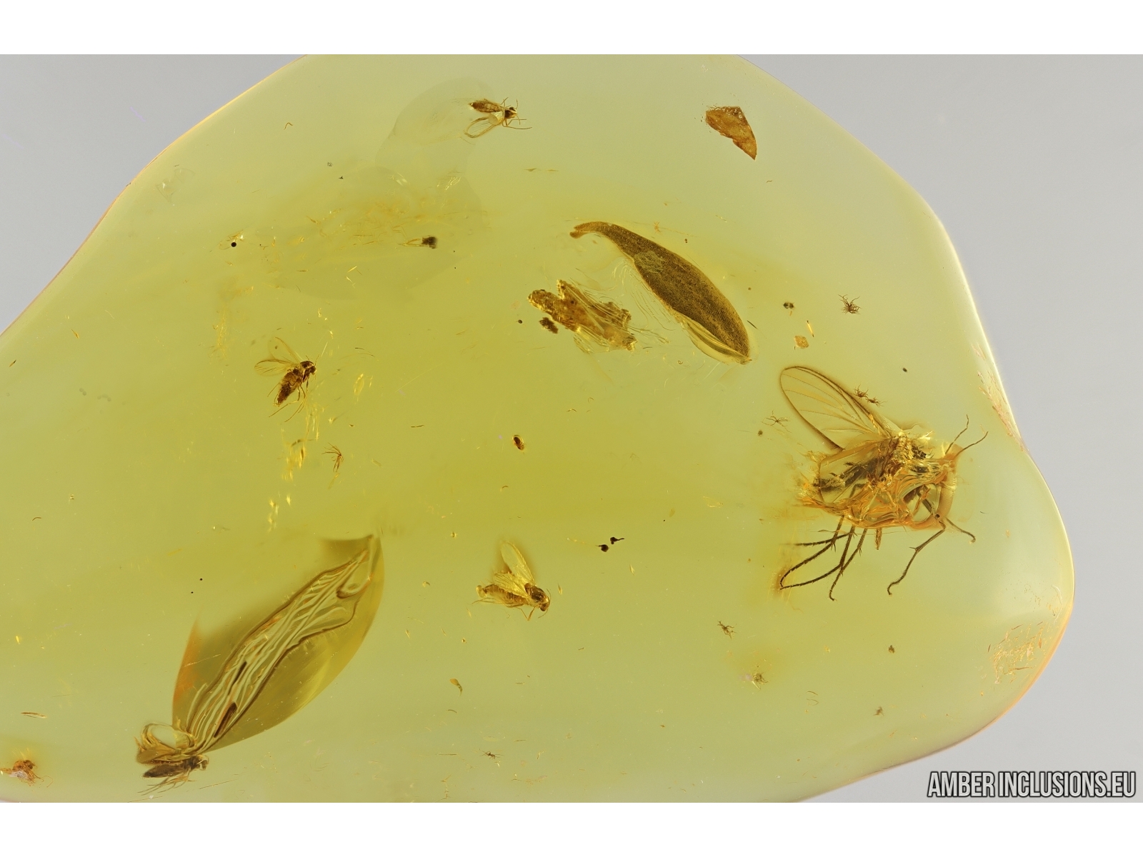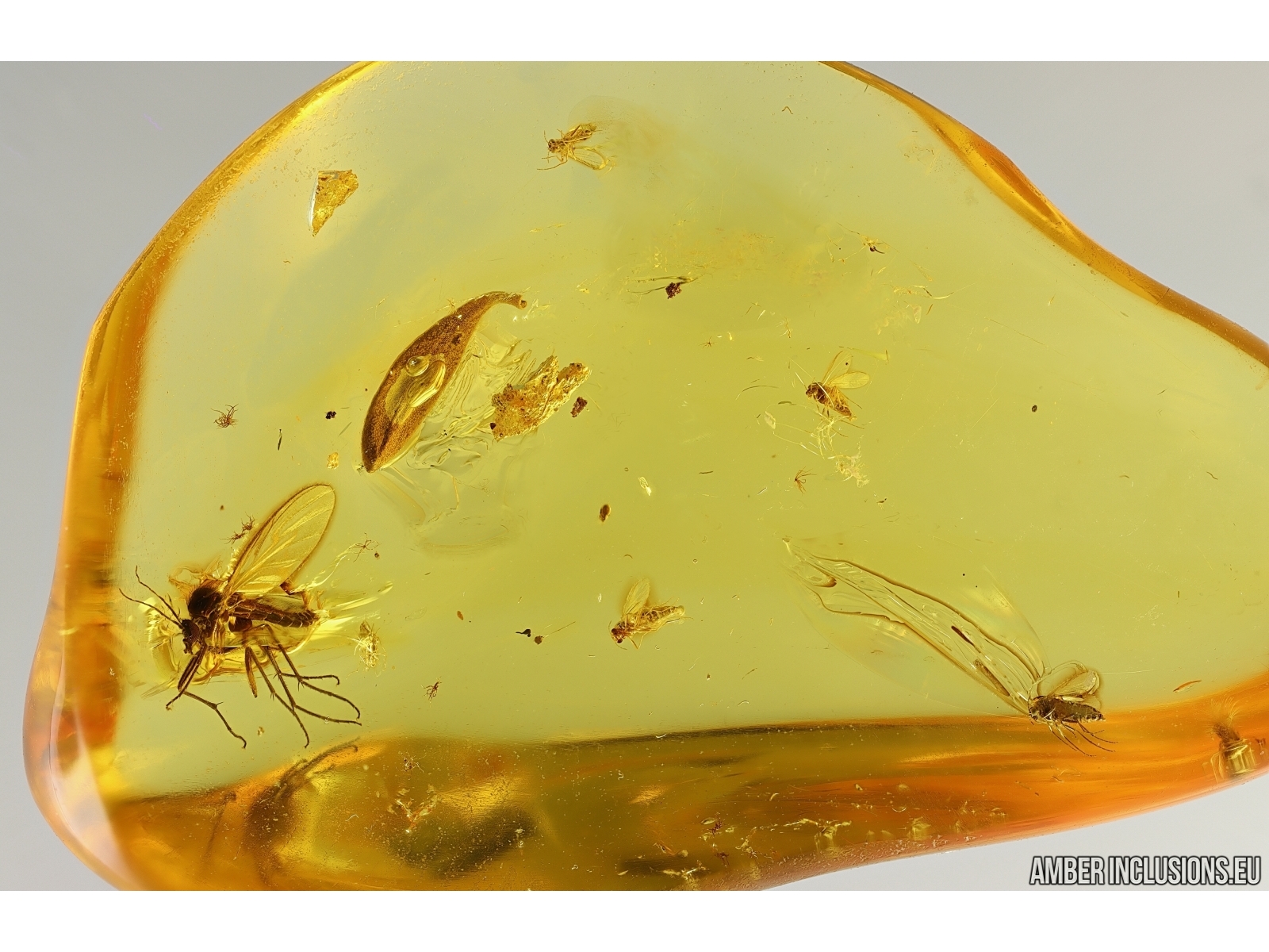 Baltic amber stone with fossil inclusions, trapped 34-56 million years ago - Fungus gnat Keroplatidae, Leaf and More.